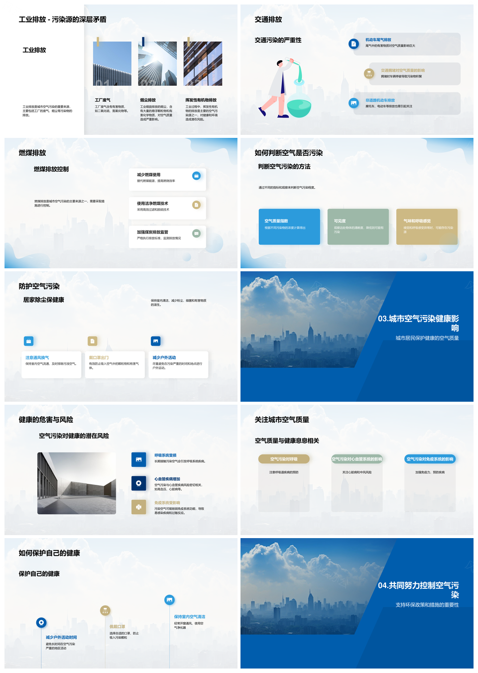 2025现代商务蓝色环境保护空气污染研究报告PPT模板