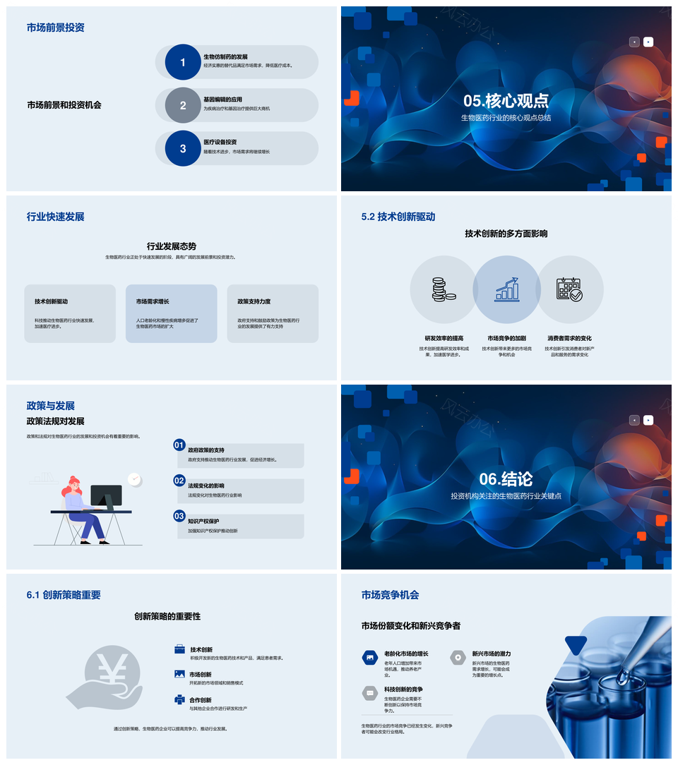 这是一张生物医药行业趋势分析PPT模板,包含生物医药、行业、趋势分析等主题内容,也可用作生物医药行业趋势分析、生物医药行业趋势、生物医药趋势分析、生物行业趋势分析、医药行业趋势分析、生物医药行业、生物医药趋势、生物行业趋势、医药行业趋势、行业趋势分析、生物医药、生物行业、生物趋势、医药行业、行业趋势等PPT场景使用。 风云办公提供的生物医药行业趋势分析PPT模板,下载格式为pptx,一共26页,作品中文字及图均可以修改和编辑,图片更改请在作品中右键图片并更换,文字修改请直接点击文字进行修改。