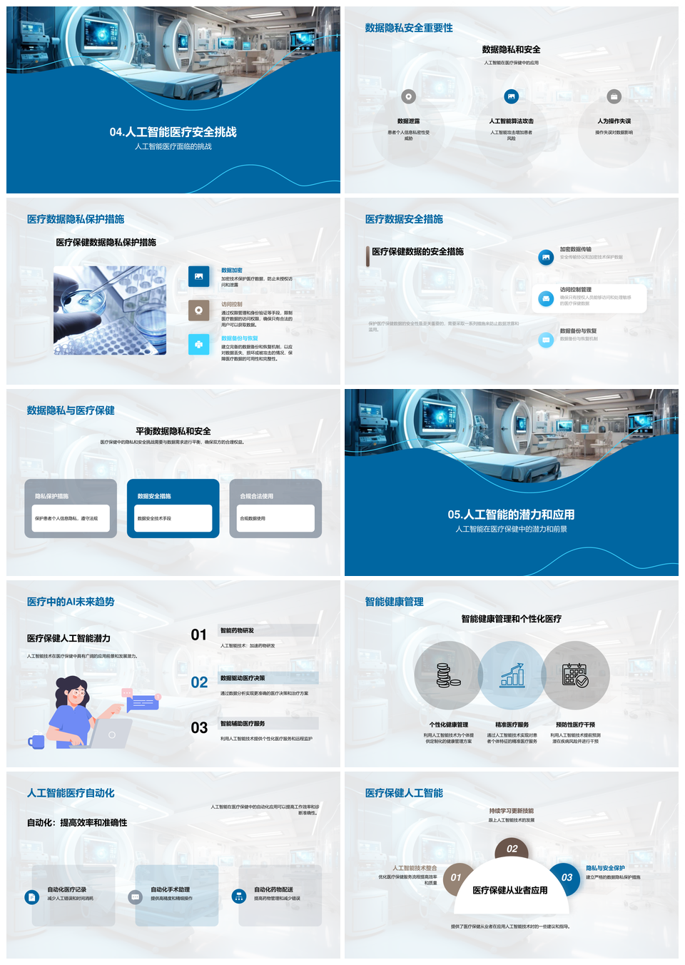 人工智能医疗保健数据安全分析隐私芯片应用PPT模板推荐