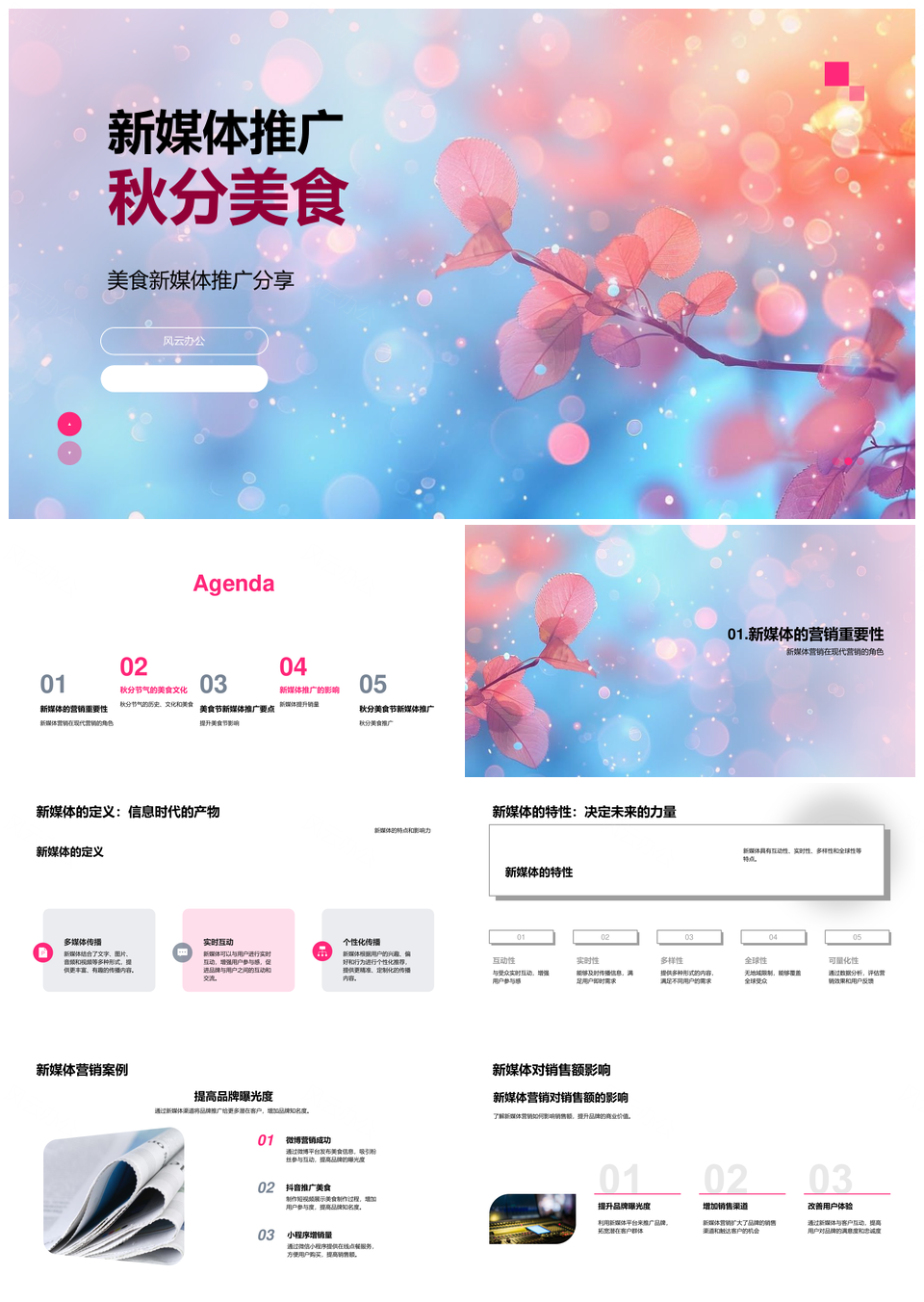 这是一张品牌运营秋分美食新媒体营销提升销售额文化PPT模板,包含品牌运营、秋分、美食、新媒体、营销、提升、销售额、文化等主题内容,也可用作品牌运营秋分美食新媒体营销、品牌运营新媒体营销提升销售额、秋分美食新媒体营销提升、新媒体营销提升销售额文化、品牌运营秋分美食新媒体、美食新媒体营销提升销售额、品牌运营秋分新媒体营销、秋分美食新媒体营销销售额、新媒体营销提升销售额、品牌运营提升销售额文化、美食新媒体营销提升、秋分美食新媒体营销、品牌运营秋分美食、秋分美食新媒体、新媒体营销提升等PPT场景使用。 风云办公提供的品牌运营秋分美食新媒体营销提升销售额文化PPT模板,下载格式为pptx,一共28页,作品中文字及图均可以修改和编辑,图片更改请在作品中右键图片并更换,文字修改请直接点击文字进行修改。