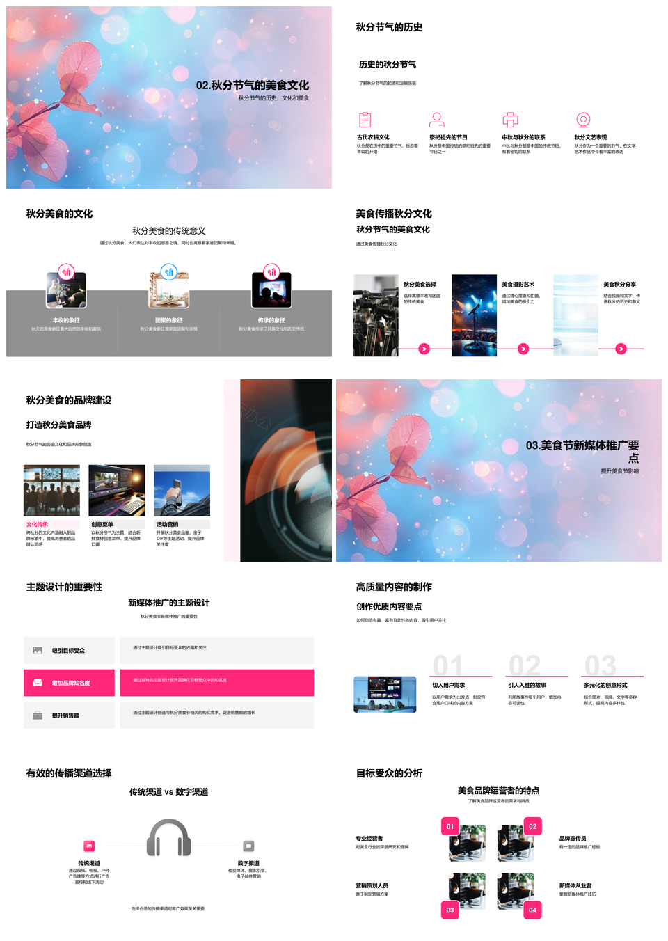 品牌运营秋分美食新媒体营销提升销售额文化PPT模板推荐