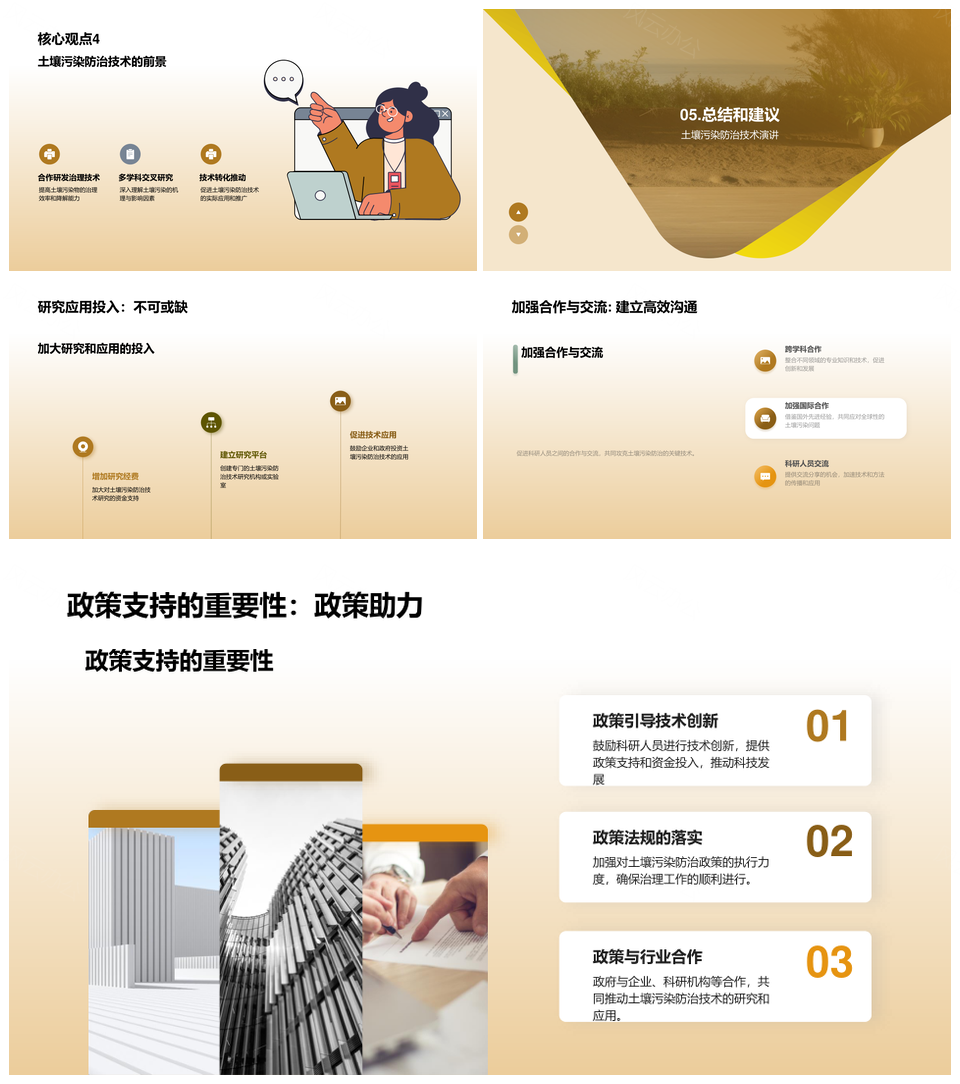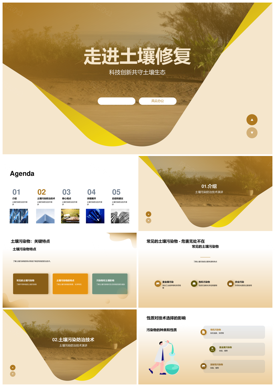 风云办公提供的环保科学家研讨土壤污染防治技术特征PPT模板,下载格式为pptx,一共23页,作品中文字及图均可以修改和编辑,图片更改请在作品中右键图片并更换,文字修改请直接点击文字进行修改。