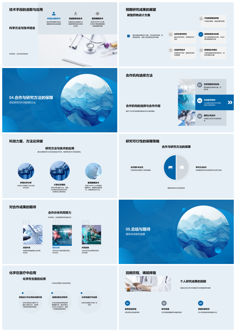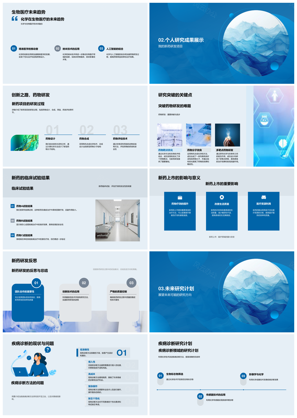 这是一张生物医疗化学新药研发诊断研究突破临床试验PPT模板,包含生物医疗、化学、新药、研发、诊断、研究、突破、临床、试验等主题内容,也可用作生物医疗新药研发、医疗化学新药研发、化学新药研发诊断、新药研发诊断研究、研发诊断研究突破、诊断研究突破临床试验、生物医疗新药、医疗化学新药、化学新药研发、新药研发诊断、研发诊断研究、诊断研究突破、研究突破临床试验、生物医疗、新药研发等PPT场景使用。 风云办公提供的生物医疗化学新药研发诊断研究突破临床试验PPT模板,下载格式为pptx,一共30页,作品中文字及图均可以修改和编辑,图片更改请在作品中右键图片并更换,文字修改请直接点击文字进行修改。