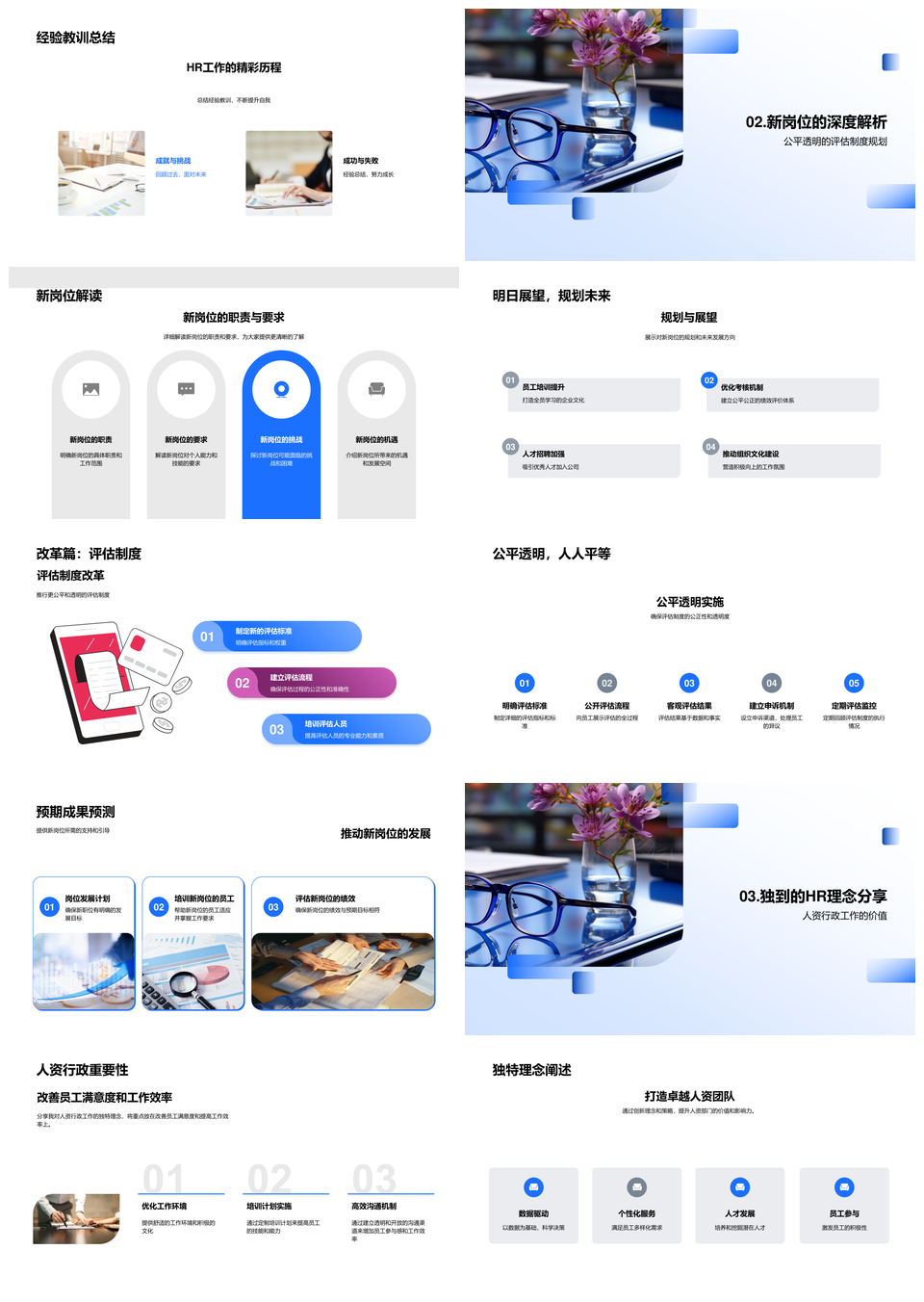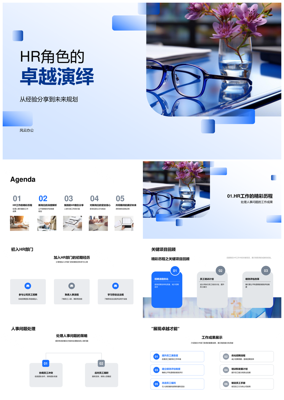 这是一张HR角色经验竞聘规划人事行政成果卓越演绎PPT模板,包含HR、角色、经验、竞聘、规划、人事、行政、成果、卓越、演绎等主题内容,也可用作HR角色经验竞聘规划、角色经验竞聘规划人事、经验竞聘规划人事行政、竞聘规划人事行政成果、规划人事行政成果卓越、人事行政成果卓越演绎、HR角色经验竞聘、角色经验竞聘规划、经验竞聘规划人事、竞聘规划人事行政、规划人事行政成果、人事行政成果卓越、行政成果卓越演绎、HR角色经验、角色经验竞聘、经验竞聘规划等PPT场景使用。 风云办公提供的HR角色经验竞聘规划人事行政成果卓越演绎PPT模板,下载格式为pptx,一共33页,作品中文字及图均可以修改和编辑,图片更改请在作品中右键图片并更换,文字修改请直接点击文字进行修改。