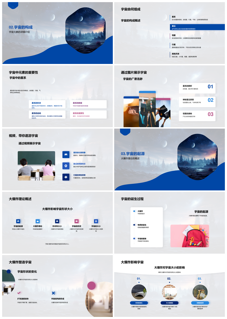 这是一张解码宇宙之谜探索星系星云恒星行星大爆炸PPT模板,包含解码、宇宙之谜、探索、星系、星云、恒星、行星、大爆炸等主题内容,也可用作解码宇宙之谜探索、宇宙之谜探索星系、之谜探索星系星云、探索星系星云恒星、星系星云恒星行星、星云恒星行星大爆炸、解码宇宙之谜、宇宙之谜探索、之谜探索星系、探索星系星云、星系星云恒星、星云恒星行星、恒星行星大爆炸、解码宇宙、宇宙之谜等PPT场景使用。 风云办公提供的解码宇宙之谜探索星系星云恒星行星大爆炸PPT模板,下载格式为pptx,一共28页,作品中文字及图均可以修改和编辑,图片更改请在作品中右键图片并更换,文字修改请直接点击文字进行修改。