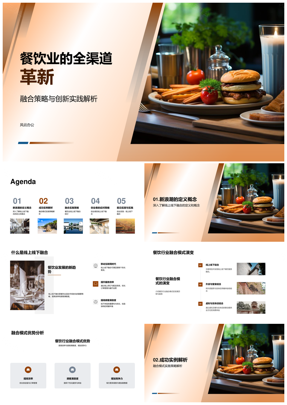 风云办公提供的餐饮业全渠道融合创新策略与实践PPT模板,下载格式为pptx,一共24页,作品中文字及图均可以修改和编辑,图片更改请在作品中右键图片并更换,文字修改请直接点击文字进行修改。
