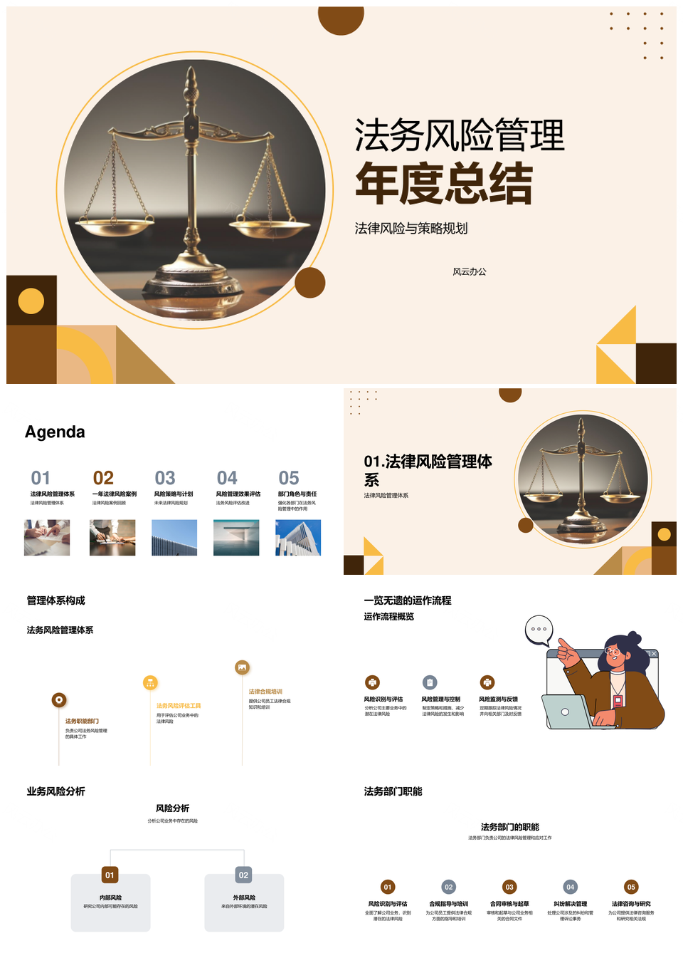 风云办公提供的法务风险管理策略应对年度总结PPT模板,下载格式为pptx,一共33页,作品中文字及图均可以修改和编辑,图片更改请在作品中右键图片并更换,文字修改请直接点击文字进行修改。