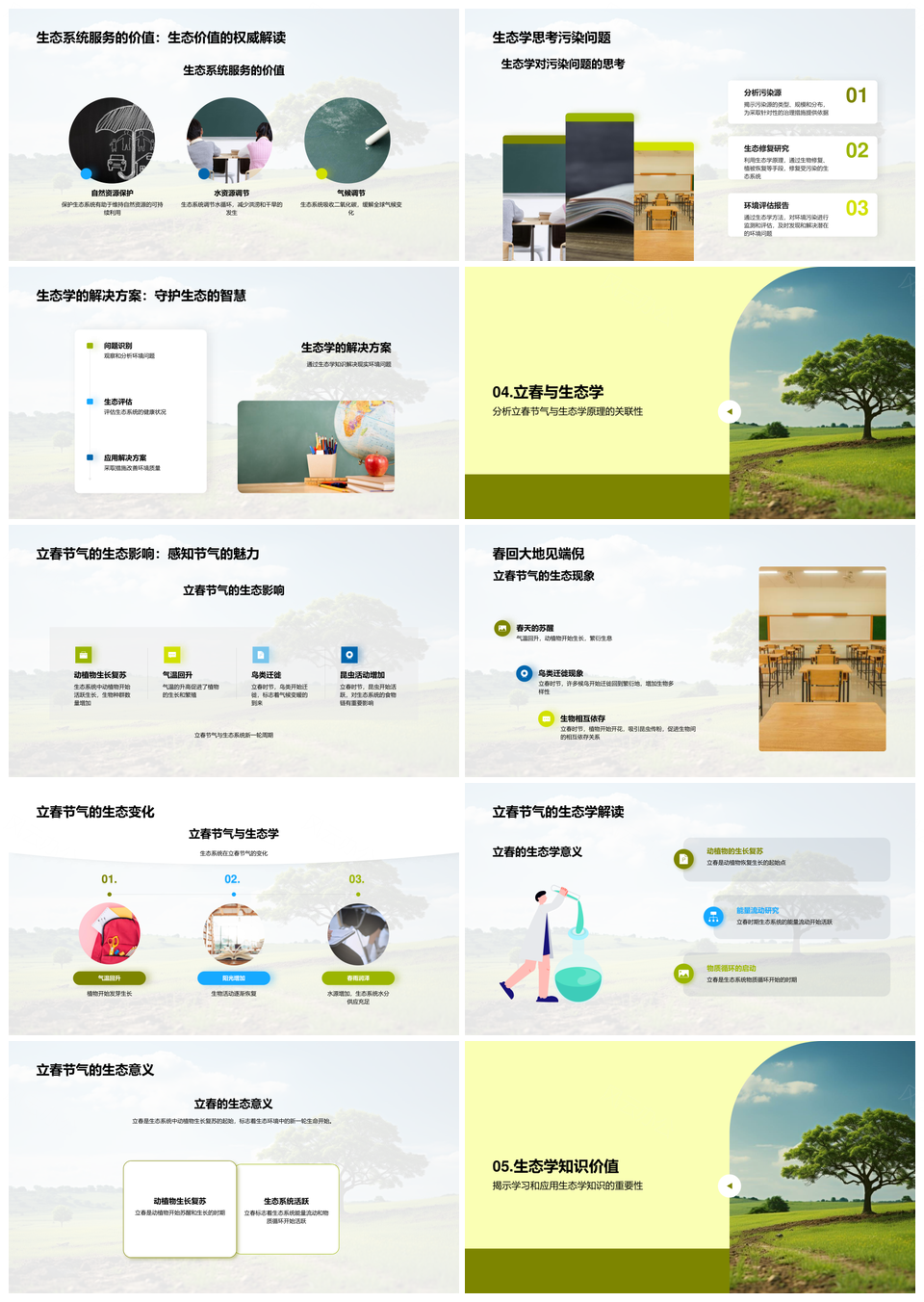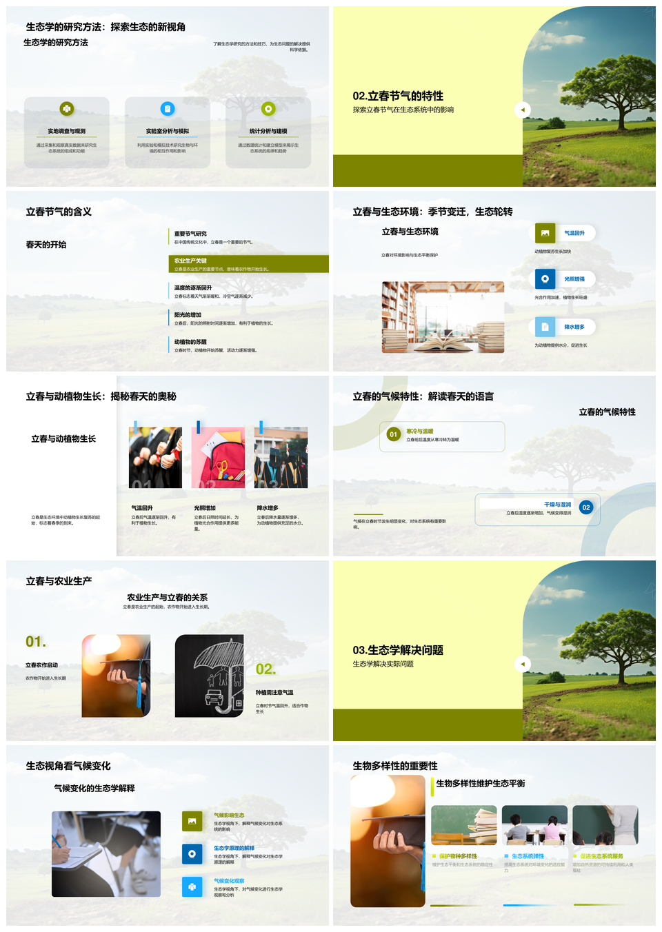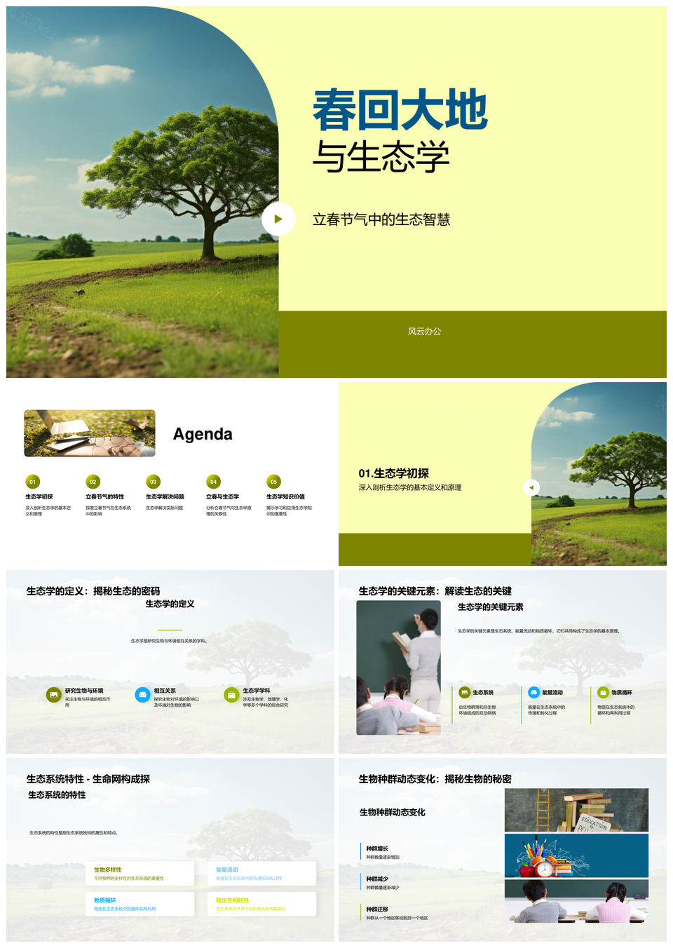 这是一张立春生态系统能量物质循环与生物多样性PPT模板,包含立春、生态系统、能量、物质循环、生物多样性等主题内容,也可用作立春生态系统能量物质循环、生态系统能量物质循环生物多样性、能量物质循环生物多样性、立春生态系统能量物质、生态系统能量物质循环、能量物质循环生物多样性、生态系统能量物质生物多样性、立春生态系统能量循环、能量物质生物多样性、立春生态系统物质循环、生态系统物质循环生物多样性、生态系统能量循环生物多样性、立春生态系统生物多样性、物质循环生物多样性、生态系统生物多样性等PPT场景使用。 风云办公提供的立春生态系统能量物质循环与生物多样性PPT模板,下载格式为pptx,一共33页,作品中文字及图均可以修改和编辑,图片更改请在作品中右键图片并更换,文字修改请直接点击文字进行修改。