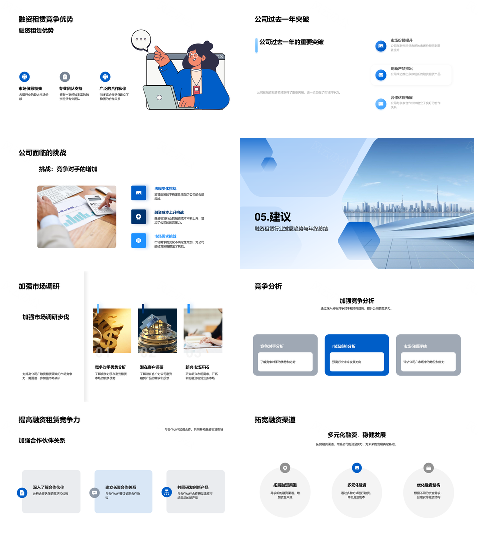 融资租赁经理年终总结行业发展趋势市场份额竞争优势PPT模板推荐