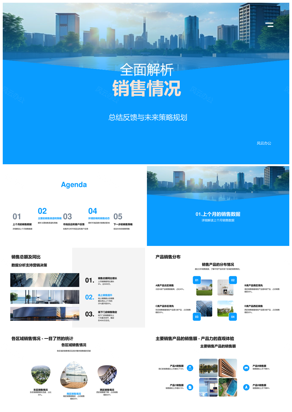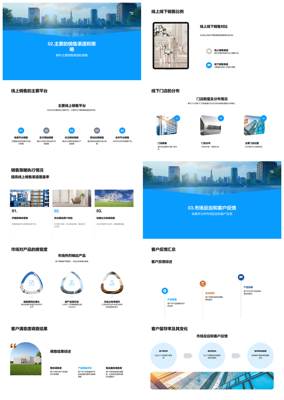 摩天大楼销售总额同比产品区域分布市场客户反馈策略解析PPT模板推荐