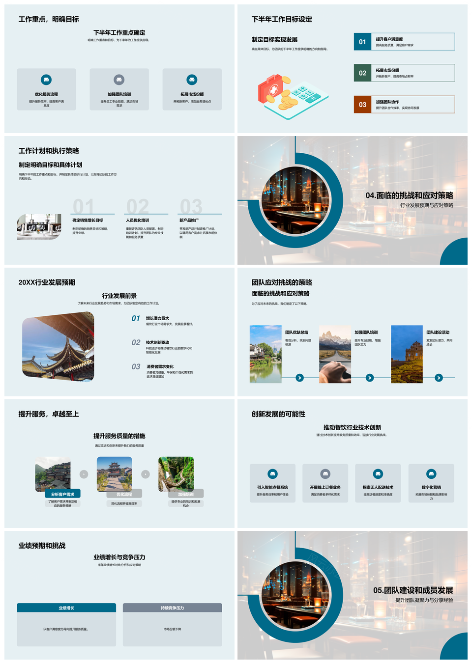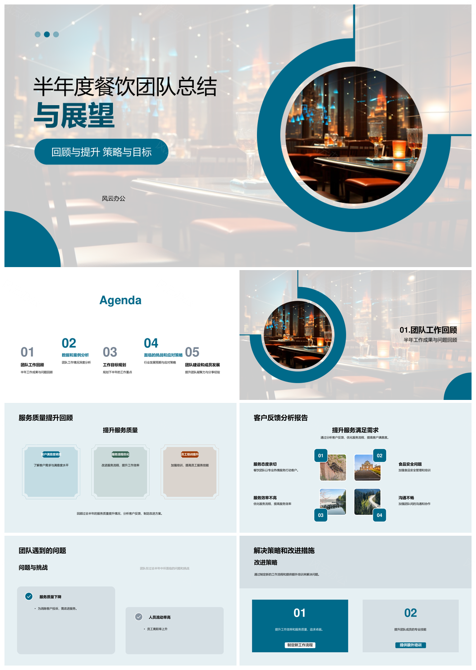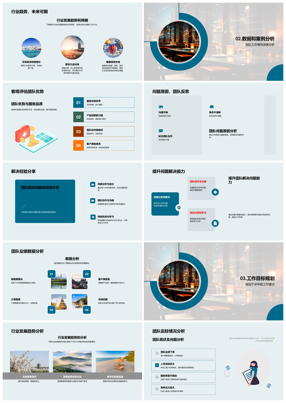 餐饮半年服务提升客户分析趋势预期团队优势不足布局优化PPT模板推荐