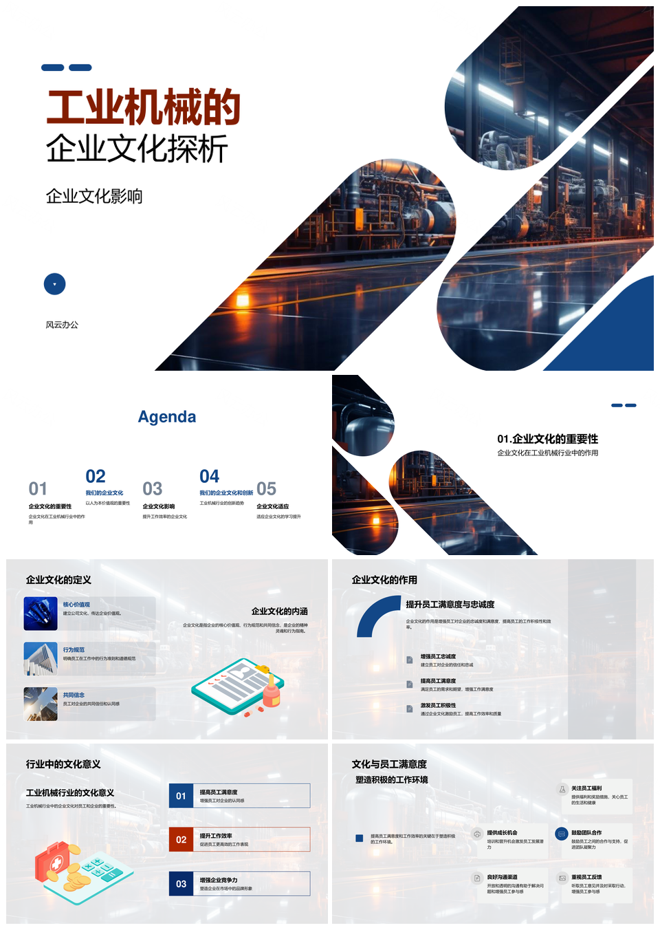 风云办公提供的工业机械企业文化与员工效率创新卓越PPT模板,下载格式为pptx,一共26页,作品中文字及图均可以修改和编辑,图片更改请在作品中右键图片并更换,文字修改请直接点击文字进行修改。