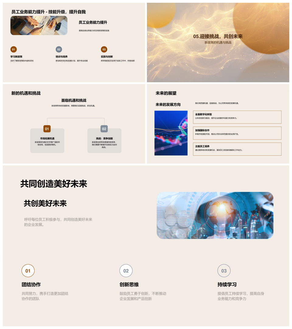 这是一张公司高管员工新政策宣导保险创新服务激励发展PPT模板,包含公司、高管、员工、新政策、宣导、保险、创新服务、激励、发展等主题内容,也可用作公司高管员工新政策宣导、高管员工新政策宣导保险、员工新政策宣导保险创新、新政策宣导保险创新服务、政策宣导保险创新服务激励、保险创新服务激励发展、公司高管员工新政策、高管员工新政策宣导、员工新政策宣导保险、新政策宣导保险创新、宣导保险创新服务、保险创新服务激励、创新服务激励发展、公司高管员工、高管员工新政策、新政策宣导、保险创新服务、服务激励发展等PPT场景使用。 风云办公提供的公司高管员工新政策宣导保险创新服务激励发展PPT模板,下载格式为pptx,一共23页,作品中文字及图均可以修改和编辑,图片更改请在作品中右键图片并更换,文字修改请直接点击文字进行修改。