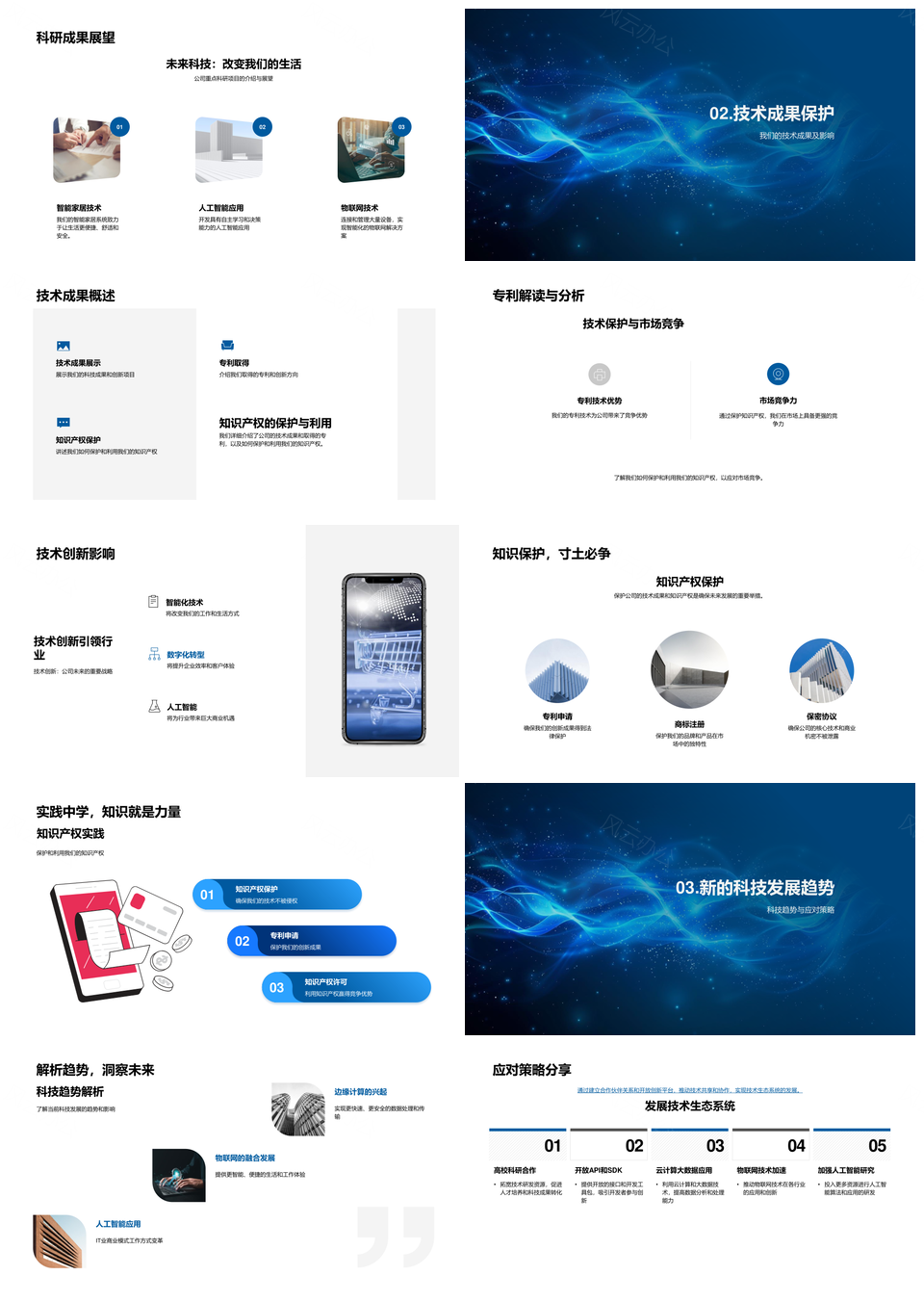 风云办公提供的科技创新研发挑战突破成果趋势计划PPT模板,下载格式为pptx,一共33页,作品中文字及图均可以修改和编辑,图片更改请在作品中右键图片并更换,文字修改请直接点击文字进行修改。