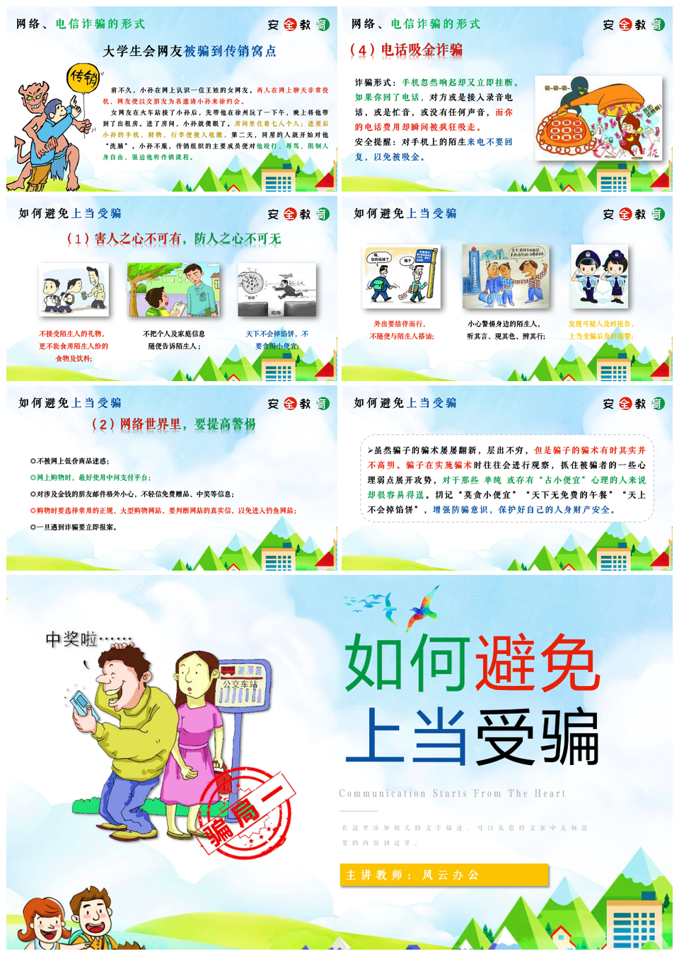 这是一张绿色中学安全教育主题班会《如何避免上当受骗》PPT模板,包含绿色中学、安全教育、主题班会、如何避免、上当受骗等主题内容,也可用作绿色中学安全教育主题班会如何避免上当受骗、绿色中学安全教育主题班会如何避免、绿色中学安全教育主题班会上当受骗、绿色中学安全教育如何避免上当受骗、绿色中学主题班会如何避免上当受骗、安全教育主题班会如何避免上当受骗、绿色中学安全教育主题班会、安全教育主题班会如何避免、主题班会如何避免上当受骗、绿色中学安全教育如何避免、绿色中学如何避免上当受骗、安全教育如何避免上当受骗、绿色中学安全教育、安全教育主题班会、主题班会如何避免、如何避免上当受骗等PPT场景使用。 风云办公提供的绿色中学安全教育主题班会《如何避免上当受骗》PPT模板,下载格式为pptx,一共26页,作品中文字及图均可以修改和编辑,图片更改请在作品中右键图片并更换,文字修改请直接点击文字进行修改。
