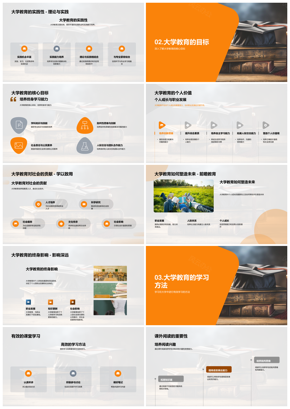大学教育目标实践与课堂阅读成长PPT模板推荐