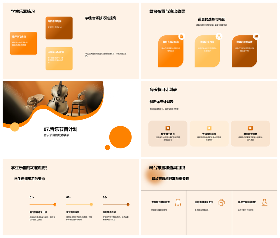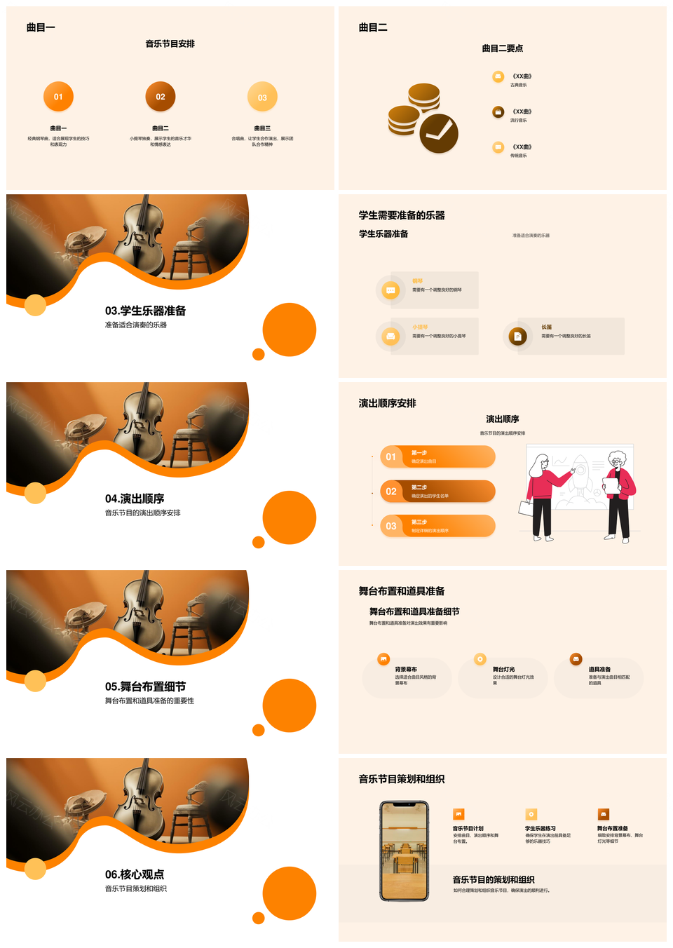 星耀音乐夜师生筹备舞台乐器道具曲目名单PPT模板推荐