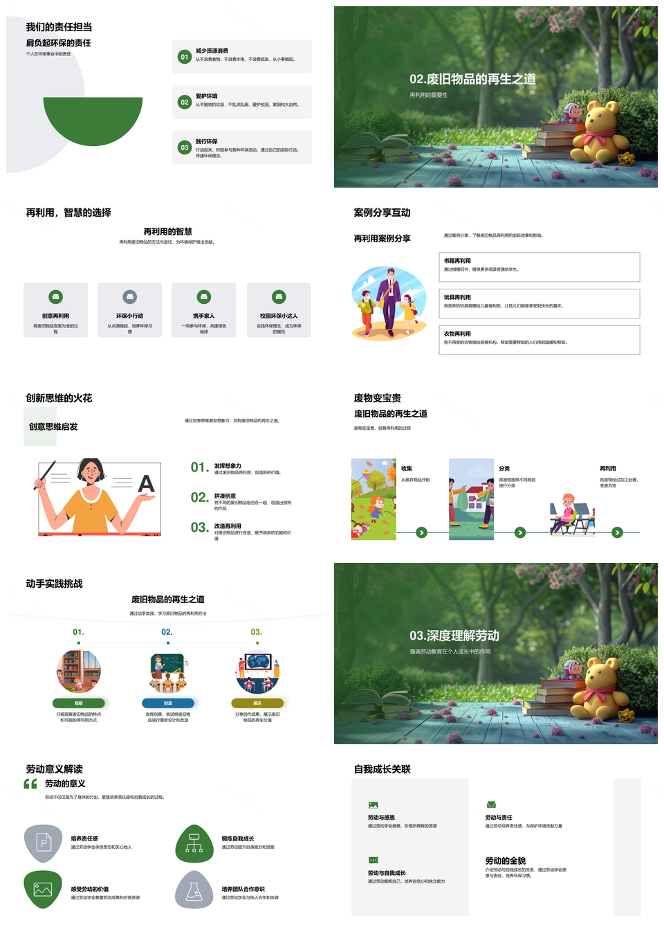 这是一张2025环保再利用废旧物品守护地球班级劳动责任教育PPT模板,包含2025、环保、再利用、废旧物品、守护、地球、班级、劳动、责任、教育等主题内容,也可用作环保再利用废旧物品守护地球、再利用废旧物品守护地球班级、废旧物品守护地球班级劳动责任、守护地球班级劳动责任教育、环保再利用废旧物品、再利用废旧物品守护地球、废旧物品守护地球班级、守护地球班级劳动责任、班级劳动责任教育、环保再利用、再利用废旧物品、废旧物品守护地球、守护地球班级、班级劳动责任、劳动责任教育等PPT场景使用。 风云办公提供的2025环保再利用废旧物品守护地球班级劳动责任教育PPT模板,下载格式为pptx,一共33页,作品中文字及图均可以修改和编辑,图片更改请在作品中右键图片并更换,文字修改请直接点击文字进行修改。
