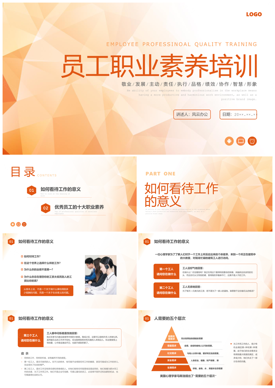 橙简企业员工职业素养培训PPT十大素养工作意义推荐