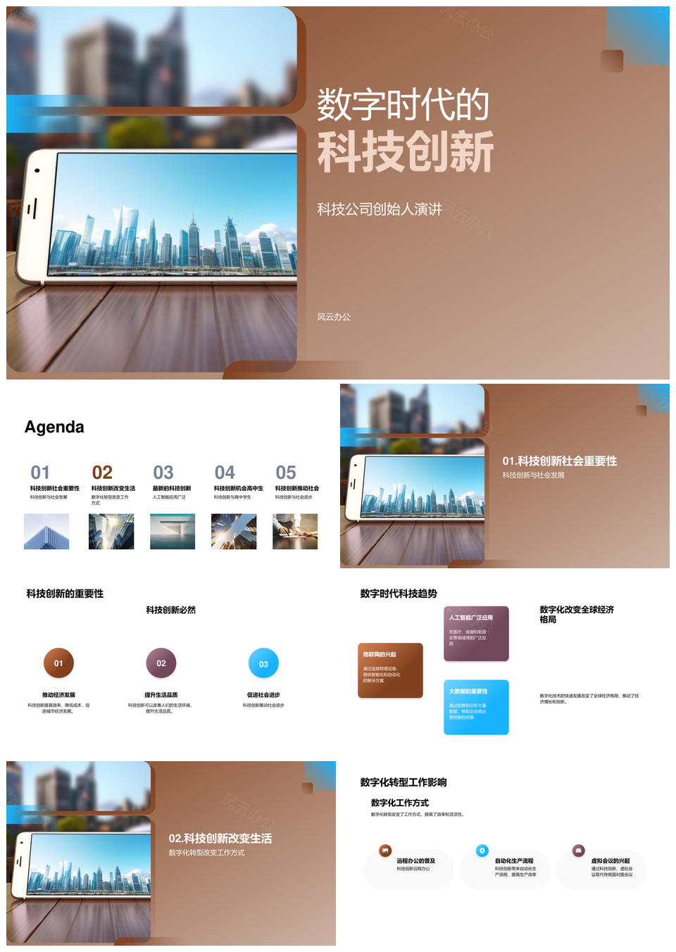 风云办公提供的数字时代科技创新重塑生活工作方式PPT模板,下载格式为pptx,一共22页,作品中文字及图均可以修改和编辑,图片更改请在作品中右键图片并更换,文字修改请直接点击文字进行修改。