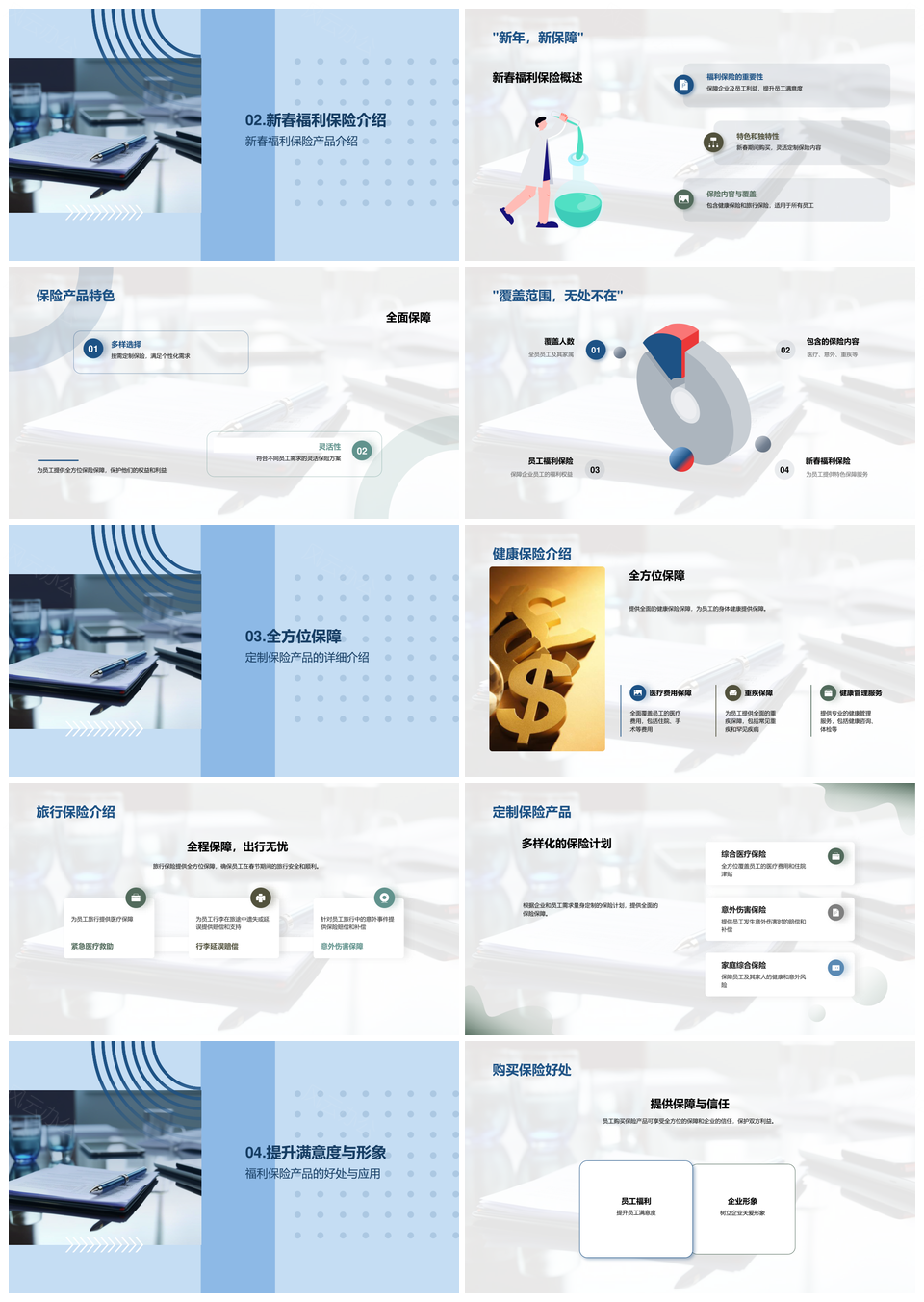 风云办公提供的企业员工健康旅行保险福利策略定制PPT模板,下载格式为pptx,一共24页,作品中文字及图均可以修改和编辑,图片更改请在作品中右键图片并更换,文字修改请直接点击文字进行修改。
