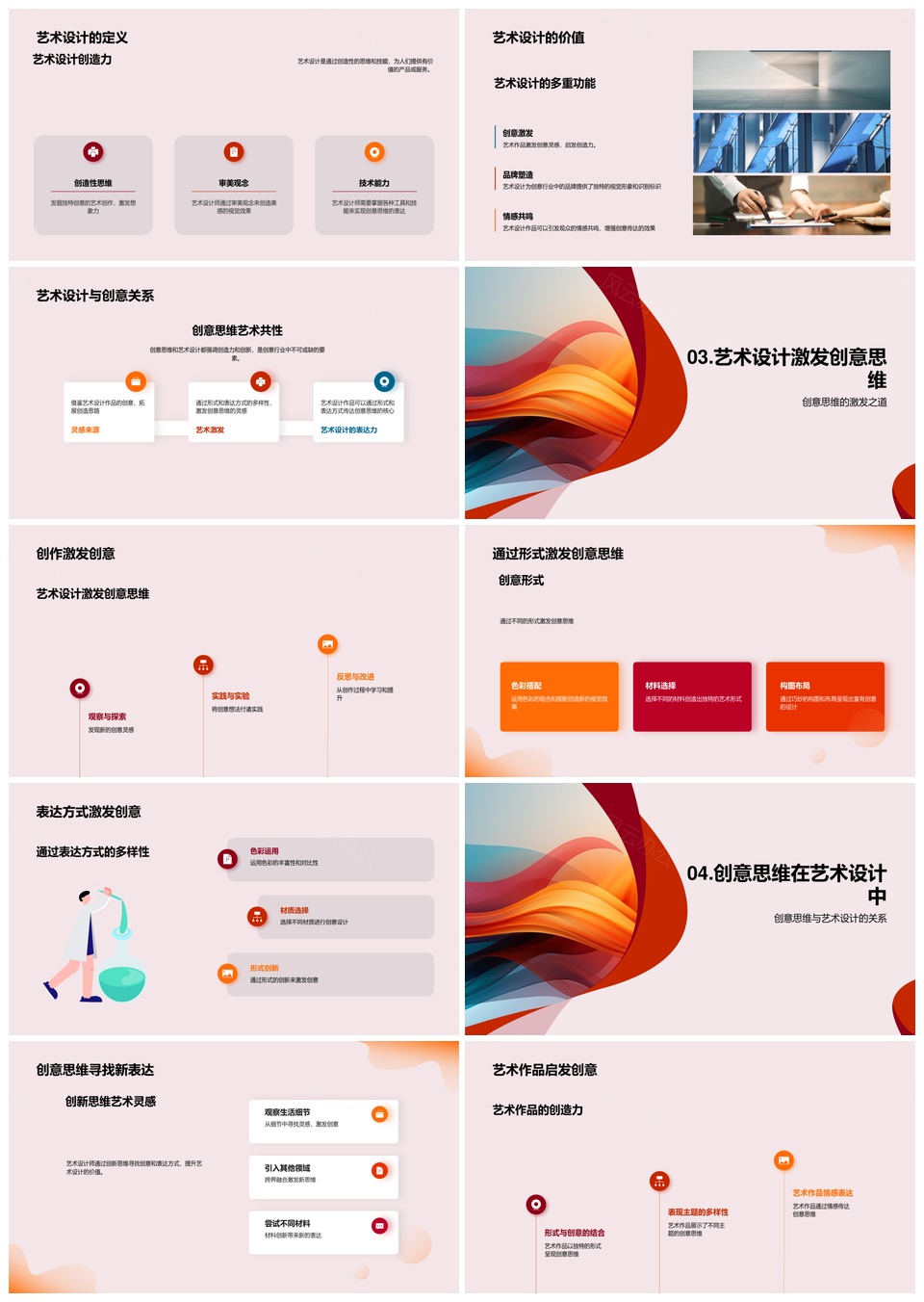 风云办公提供的艺术设计创意思维高中教育交流演讲课件,下载格式为pptx,一共23页,作品中文字及图均可以修改和编辑,图片更改请在作品中右键图片并更换,文字修改请直接点击文字进行修改。