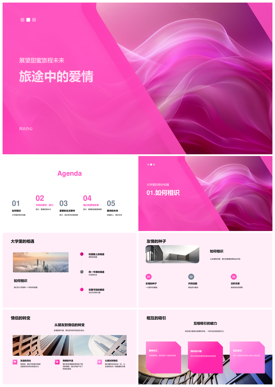 风云办公提供的旅途爱情故事从友到侣热爱共忆里程碑PPT模板,下载格式为pptx,一共33页,作品中文字及图均可以修改和编辑,图片更改请在作品中右键图片并更换,文字修改请直接点击文字进行修改。