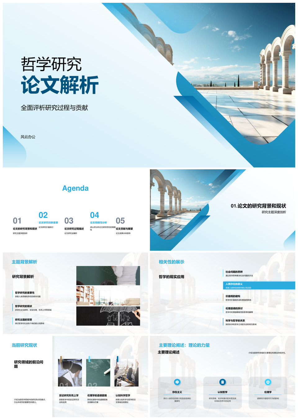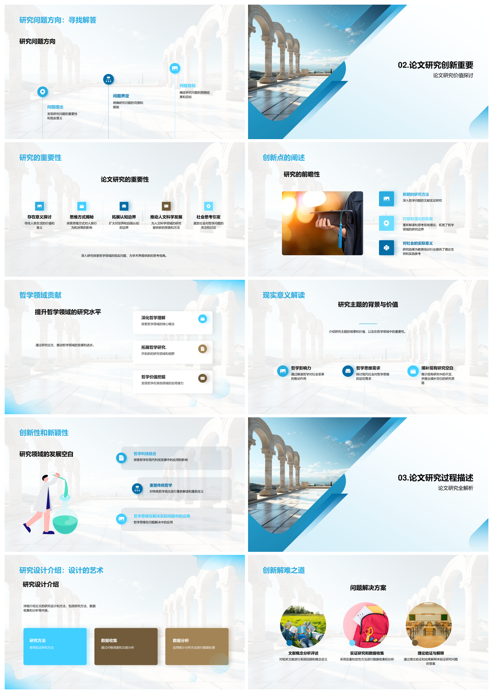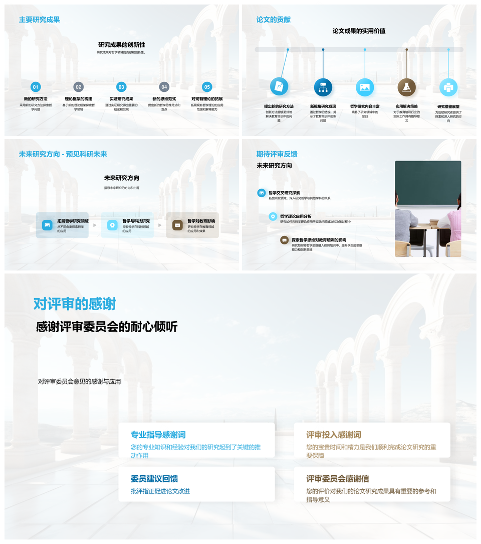 哲学论文研究贡献与古希腊柱子创新解析PPT模板推荐