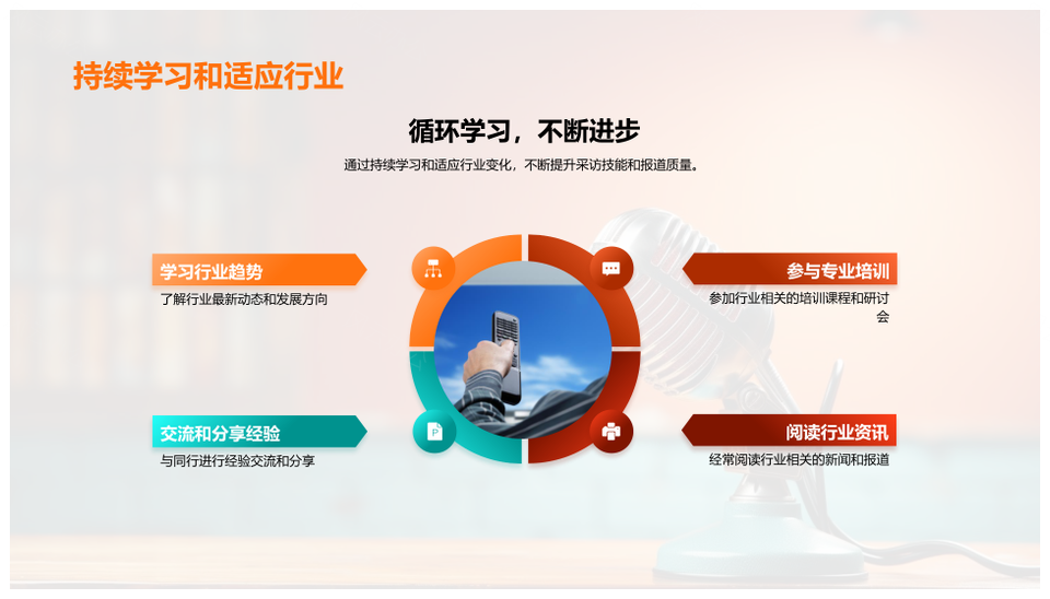 这是一张新闻采访技巧提升报道真实公正深度PPT模板,包含新闻采访、技巧、提升、报道、真实、公正、深度等主题内容,也可用作新闻采访技巧提升、提升报道真实公正、报道真实公正深度、新闻采访技巧、采访技巧提升、提升报道真实、报道真实公正、真实公正深度、新闻采访、采访技巧、技巧提升、提升报道、报道真实、真实公正、公正深度等PPT场景使用。