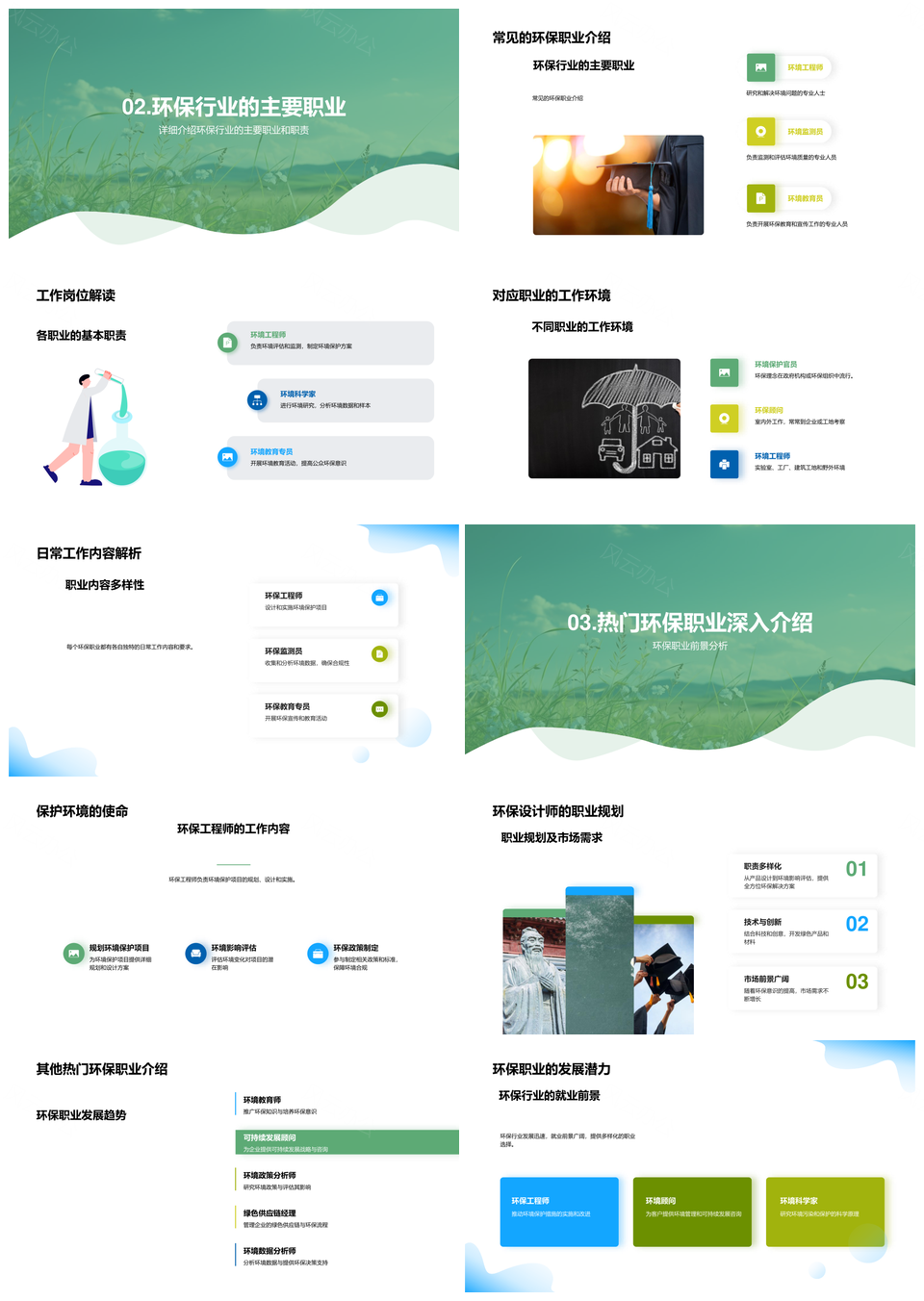 风云办公提供的环保职业发展与创新教育引领绿色事业PPT模板,下载格式为pptx,一共28页,作品中文字及图均可以修改和编辑,图片更改请在作品中右键图片并更换,文字修改请直接点击文字进行修改。