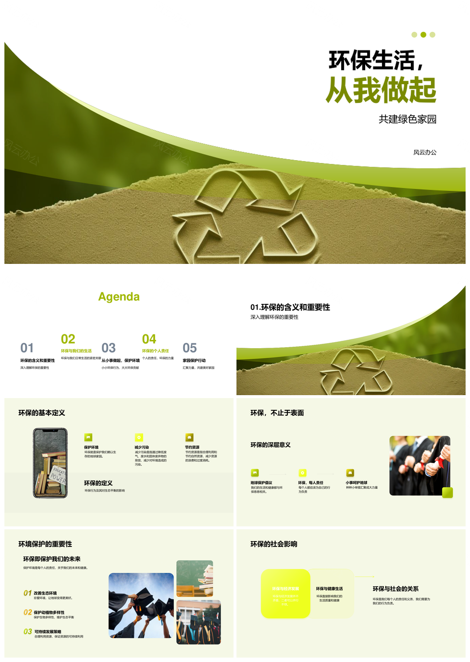 风云办公提供的环保责任共建绿色家园节能健康生活PPT模板,下载格式为pptx,一共33页,作品中文字及图均可以修改和编辑,图片更改请在作品中右键图片并更换,文字修改请直接点击文字进行修改。