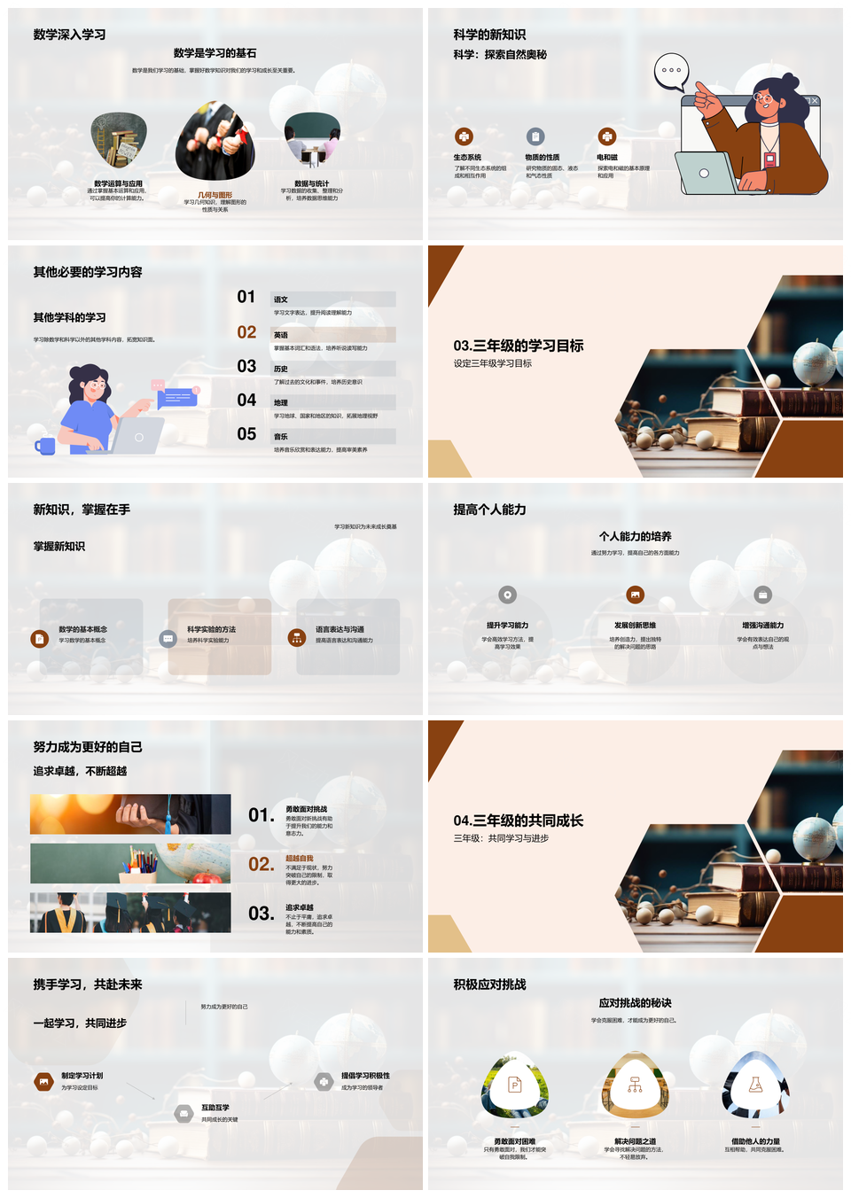 风云办公提供的三年级师生环保教育探科学数学新知PPT模板,下载格式为pptx,一共23页,作品中文字及图均可以修改和编辑,图片更改请在作品中右键图片并更换,文字修改请直接点击文字进行修改。