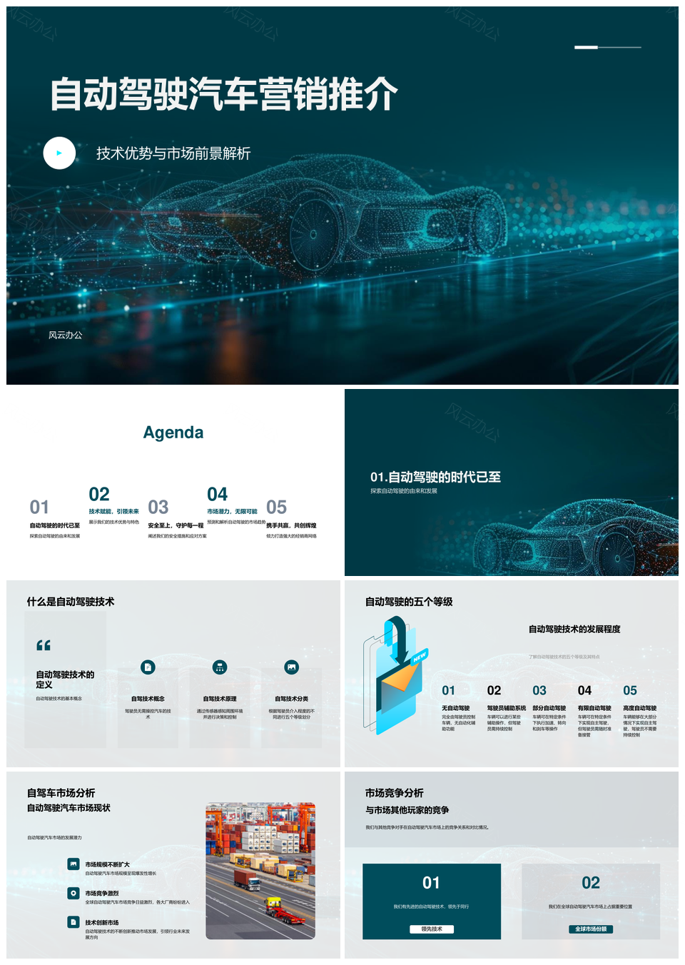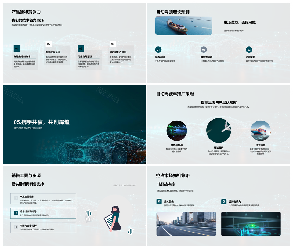 自动驾驶汽车营销技术优势市场前景分析PPT模板推荐