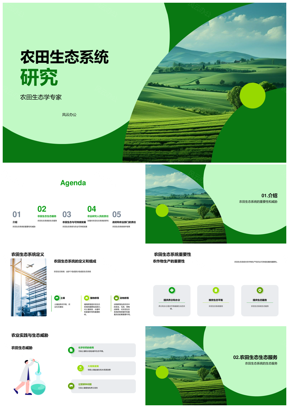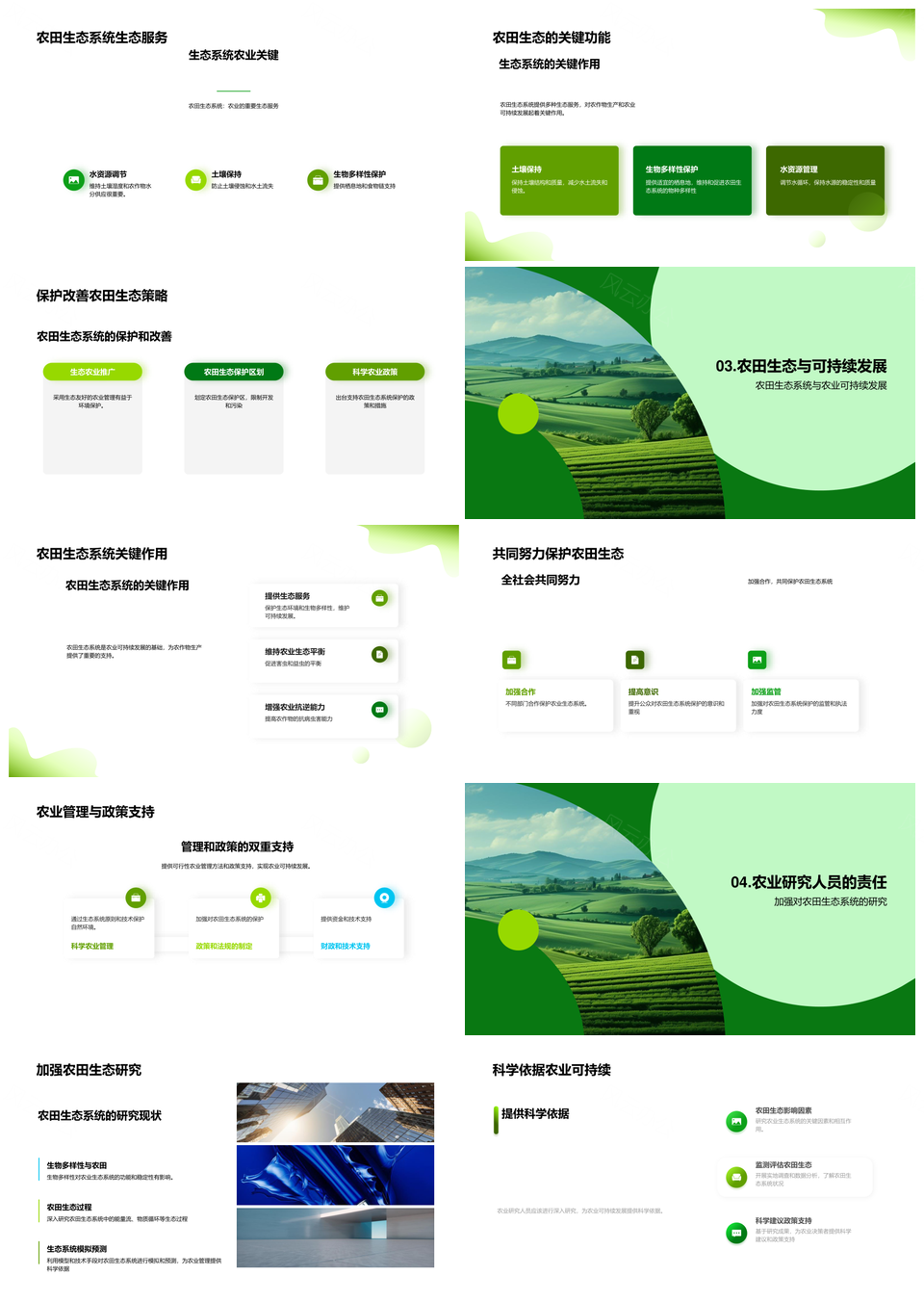 农田生态系统功能服务与可持续保护策略PPT模板推荐