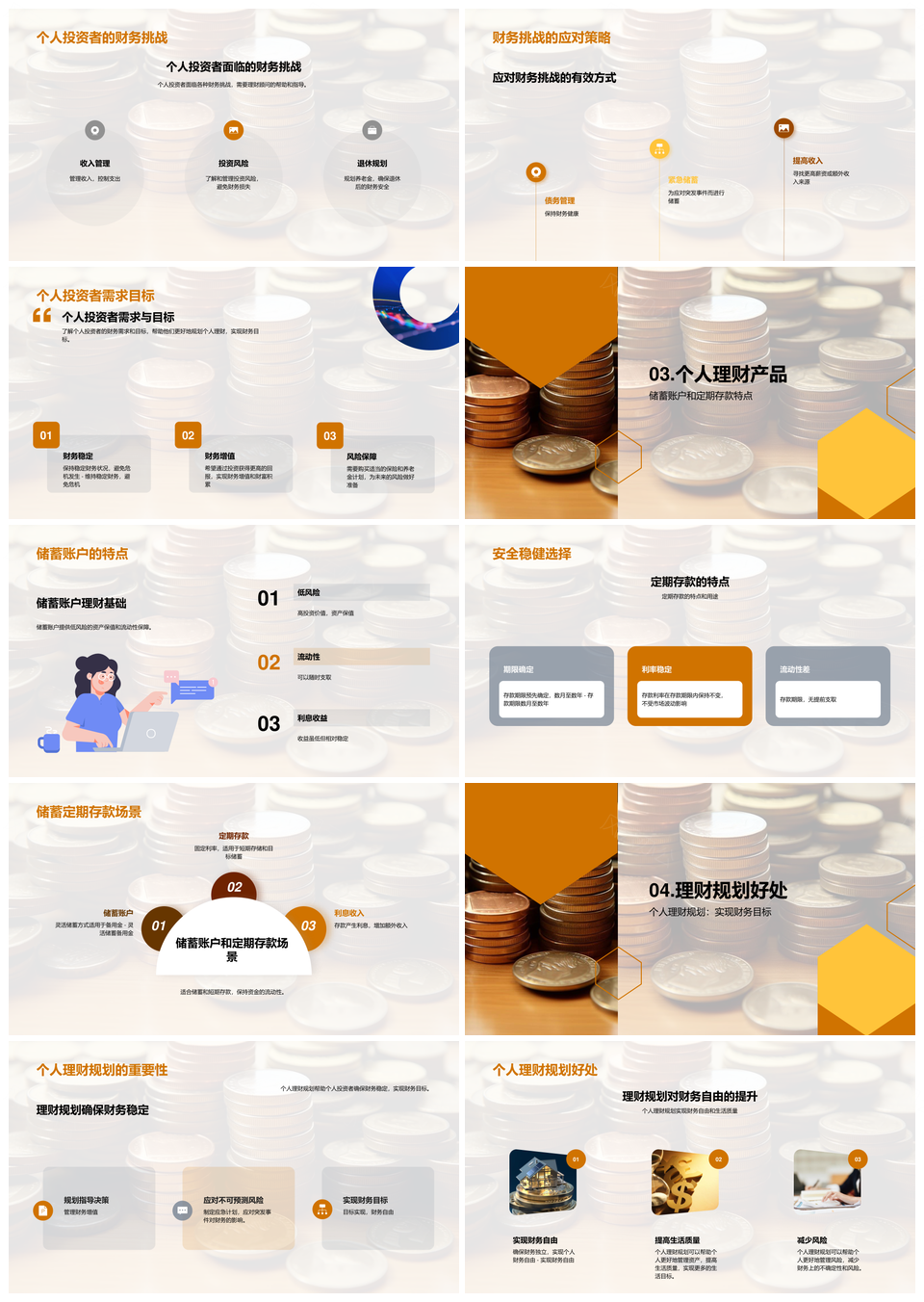 这是一张个人理财规划顾问指引投资者储蓄股票基金策略PPT模板,包含个人理财、规划、顾问、指引、投资者、储蓄、股票基金、策略等主题内容,也可用作个人理财规划顾问指引投资者储蓄股票基金策略、个人理财规划顾问指引投资者储蓄股票基金、个人理财规划顾问指引投资者储蓄股票、个人理财规划顾问指引投资者储蓄、个人理财规划顾问指引投资者、规划顾问指引投资者储蓄股票基金策略、规划顾问指引投资者储蓄股票基金、规划顾问指引投资者储蓄股票、规划顾问指引投资者储蓄、规划顾问指引投资者、指引投资者储蓄股票基金策略、指引投资者储蓄股票基金、指引投资者储蓄股票、指引投资者储蓄、投资者储蓄股票基金策略等PPT场景使用。 风云办公提供的个人理财规划顾问指引投资者储蓄股票基金策略PPT模板,下载格式为pptx,一共27页,作品中文字及图均可以修改和编辑,图片更改请在作品中右键图片并更换,文字修改请直接点击文字进行修改。