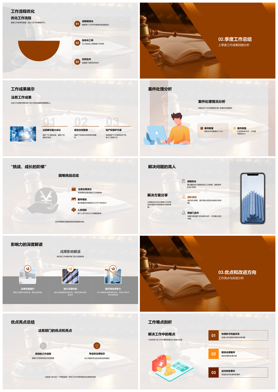 法务部门季度工作流程优化与案件成果总结PPT模板推荐
