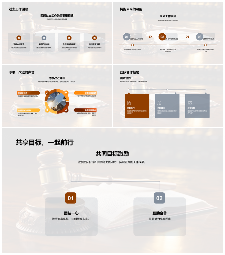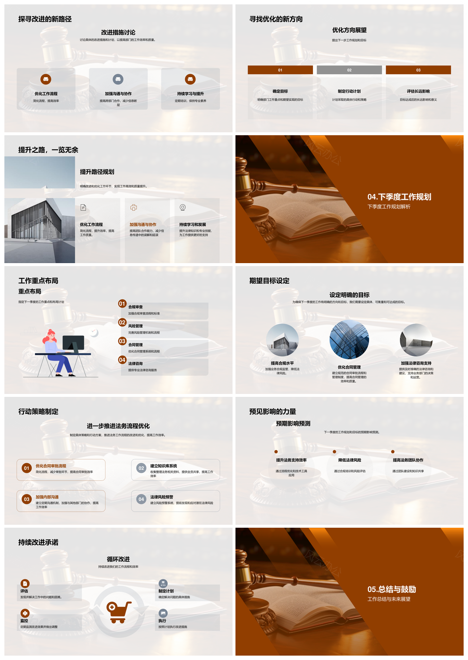 这是一张法务部门季度工作流程优化与案件成果总结PPT模板,包含法务部门、季度、工作流程、优化、案件、成果、总结等主题内容,也可用作法务部门季度工作流程优化、季度工作流程优化、工作流程优化案件、优化案件成果总结、法务部门案件成果总结、工作流程优化、案件成果总结、法务部门季度、季度工作流程、优化案件成果、案件成果、成果总结、季度优化案件、工作流程案件、法务部门优化等PPT场景使用。 风云办公提供的法务部门季度工作流程优化与案件成果总结PPT模板,下载格式为pptx,一共33页,作品中文字及图均可以修改和编辑,图片更改请在作品中右键图片并更换,文字修改请直接点击文字进行修改。