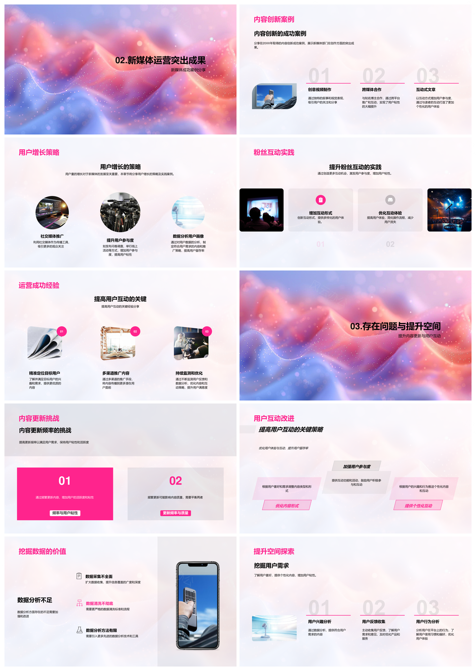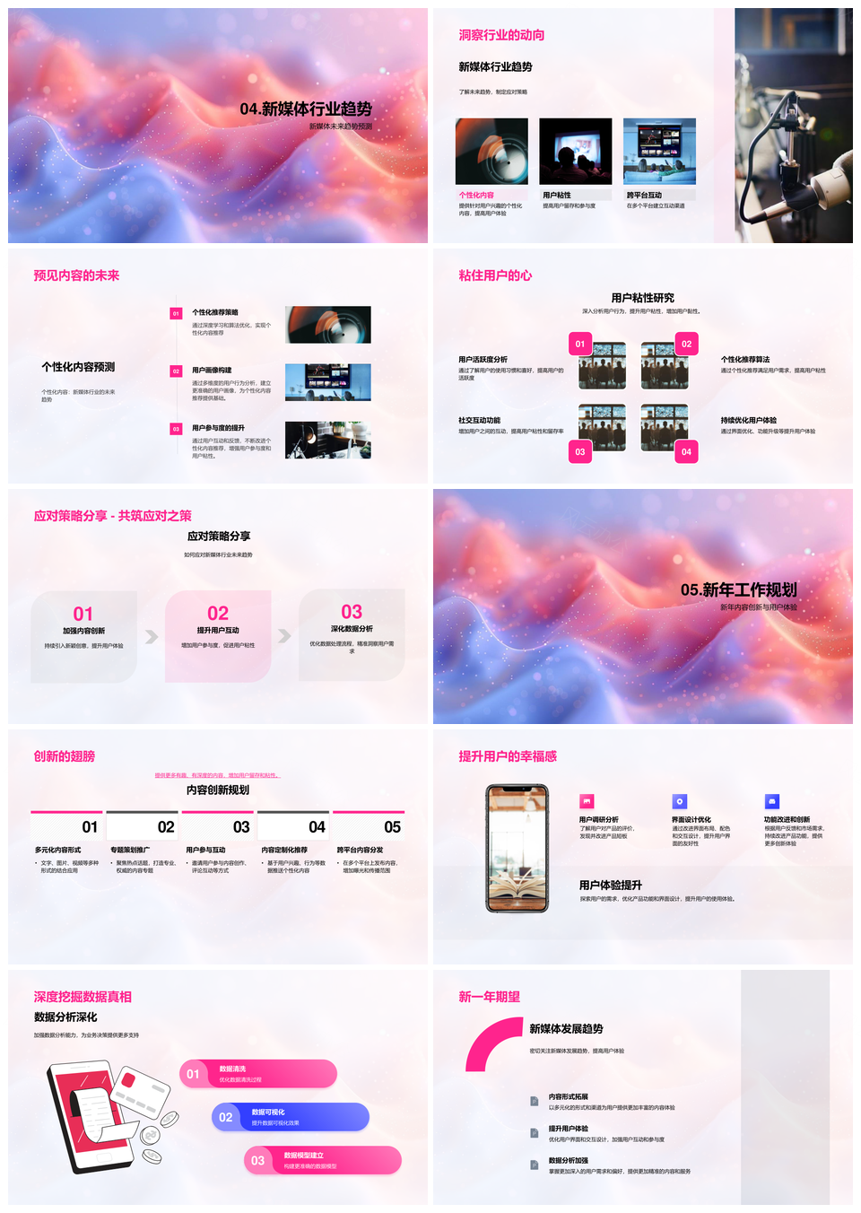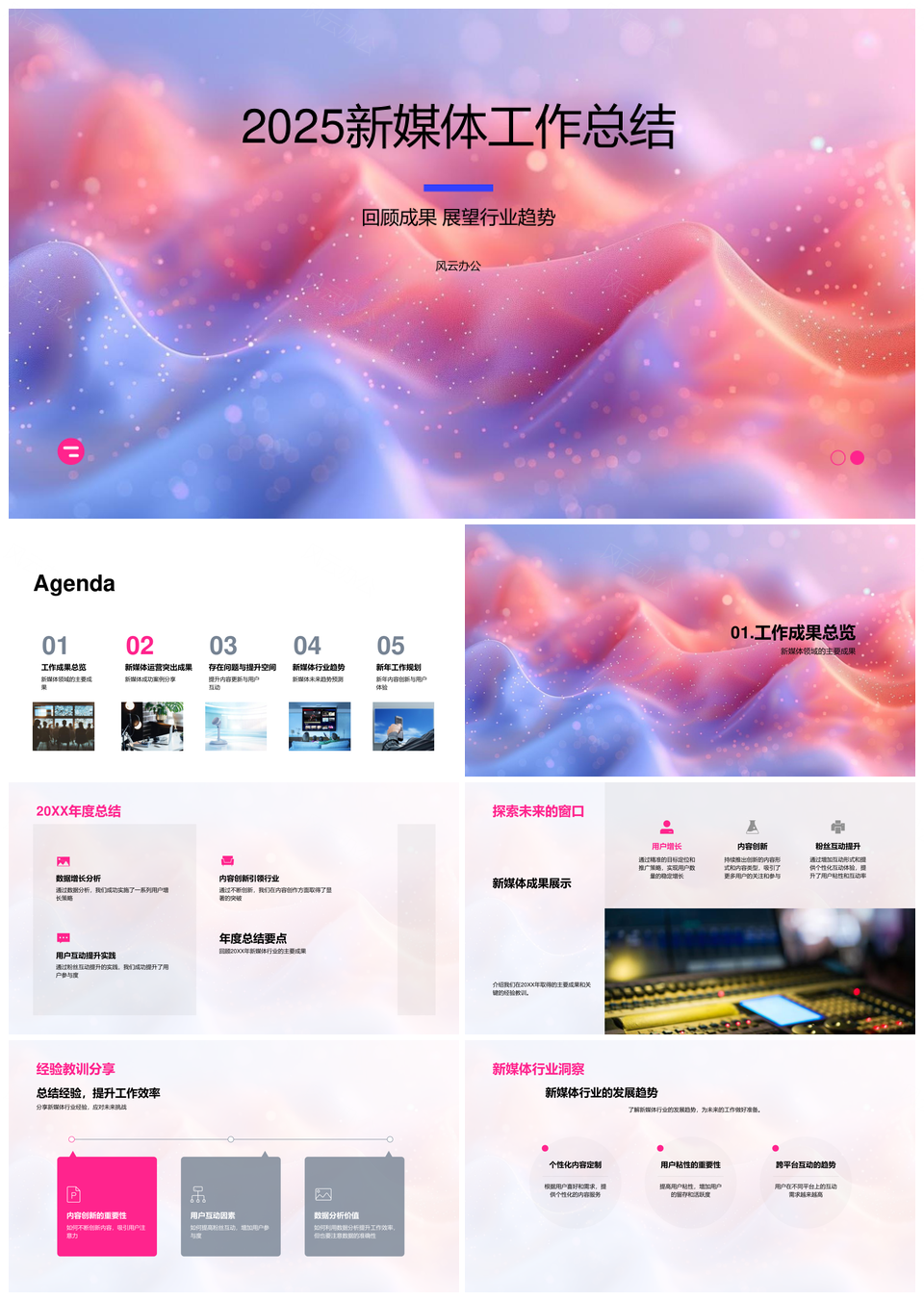 2025新媒体年度总结内容创新用户增长数据互动趋势体验PPT模板推荐