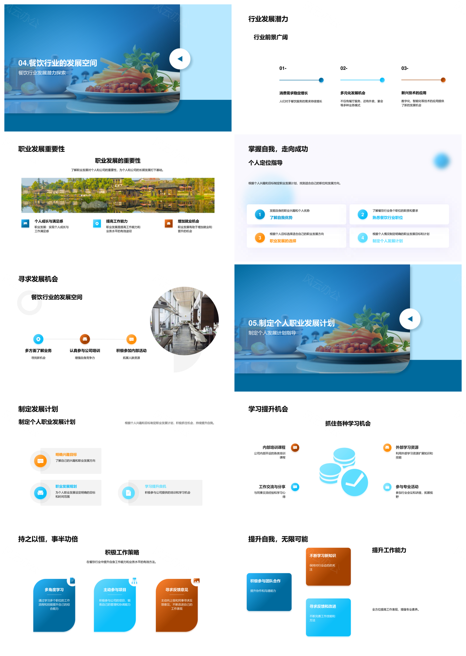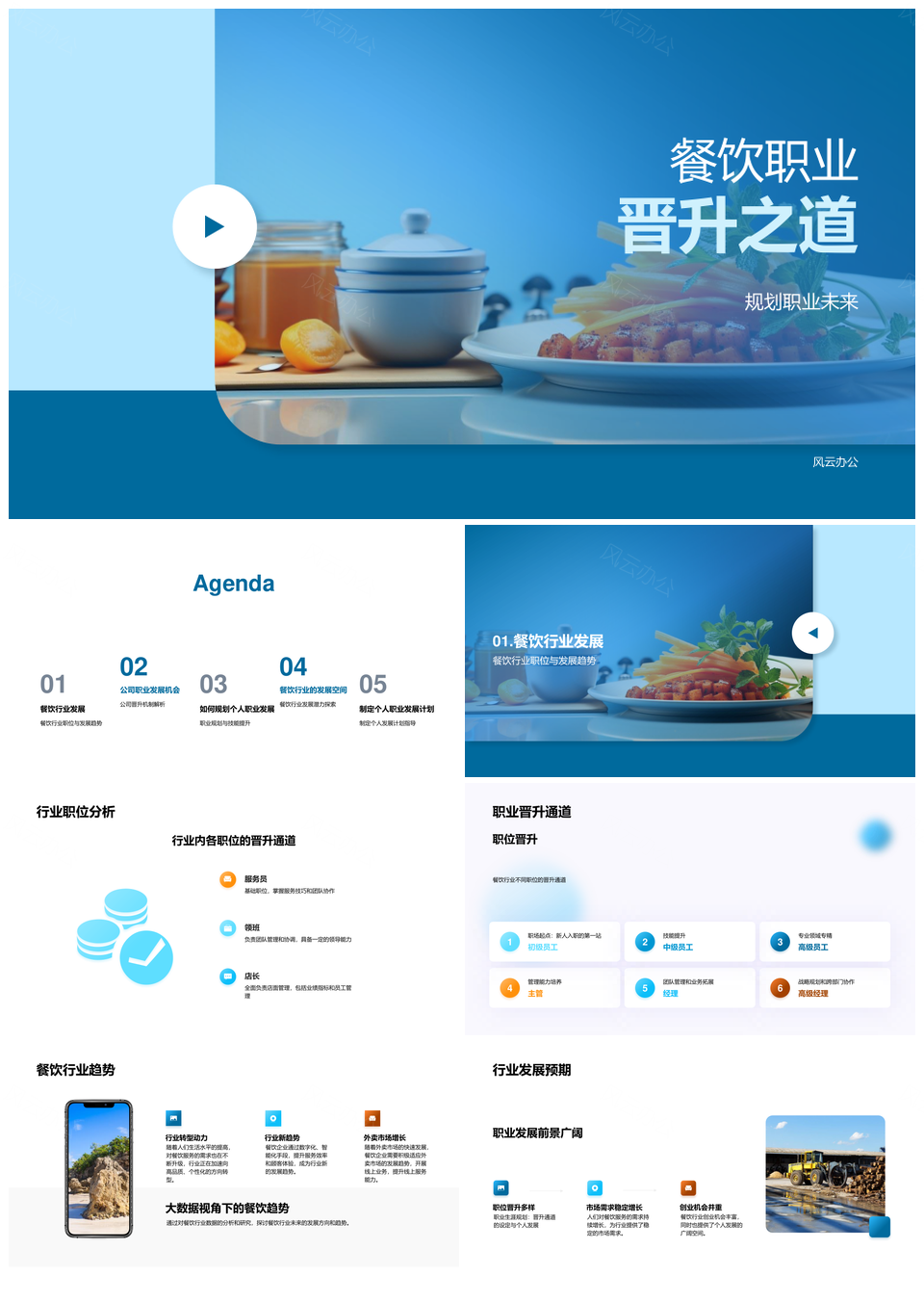 风云办公提供的餐饮职业晋升路径与行业职位规划PPT模板,下载格式为pptx,一共28页,作品中文字及图均可以修改和编辑,图片更改请在作品中右键图片并更换,文字修改请直接点击文字进行修改。