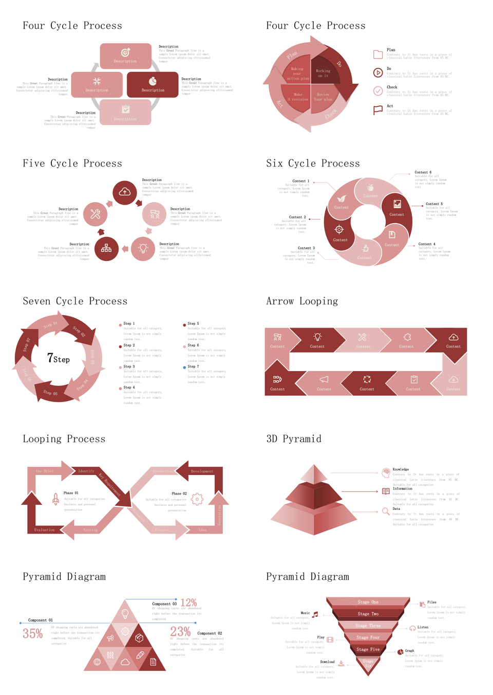 暗粉色系商务并列关系层级关系总分关系PPT图表合集