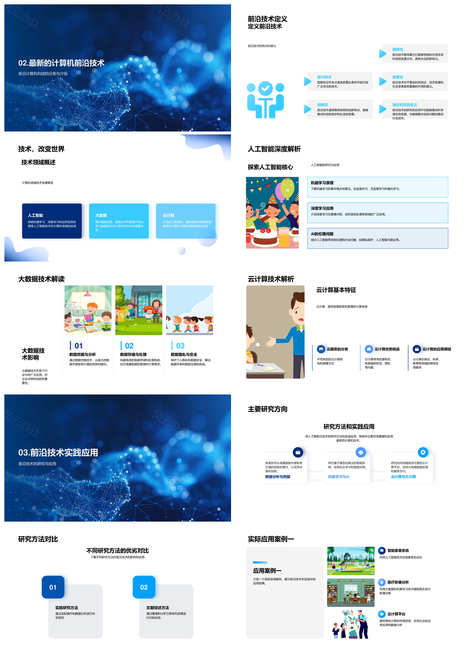 这是一张计算机前沿技术人工智能大数据云计算探析PPT模板,包含计算机、前沿技术、人工智能、大数据、云计算等主题内容,也可用作计算机前沿技术人工智能大数据、前沿技术人工智能大数据云计算、计算机前沿技术人工智能、前沿技术人工智能大数据、人工智能大数据云计算、计算机前沿技术、前沿技术人工智能、人工智能大数据、大数据云计算、云计算探析、计算机人工智能、计算机大数据、计算机云计算、前沿技术大数据、前沿技术云计算等PPT场景使用。 风云办公提供的计算机前沿技术人工智能大数据云计算探析PPT模板,下载格式为pptx,一共32页,作品中文字及图均可以修改和编辑,图片更改请在作品中右键图片并更换,文字修改请直接点击文字进行修改。