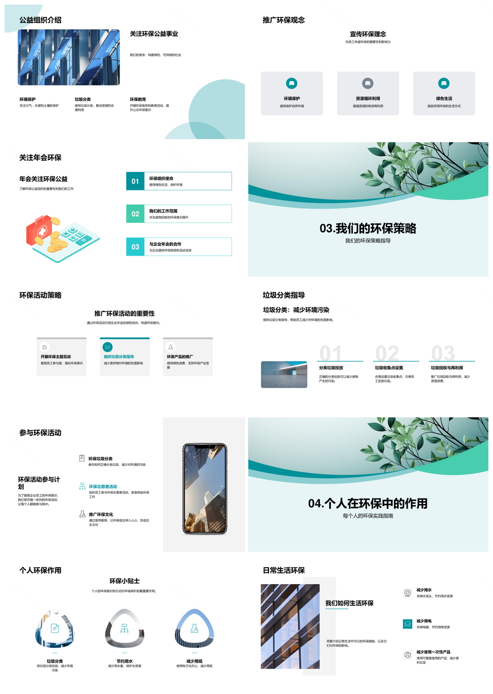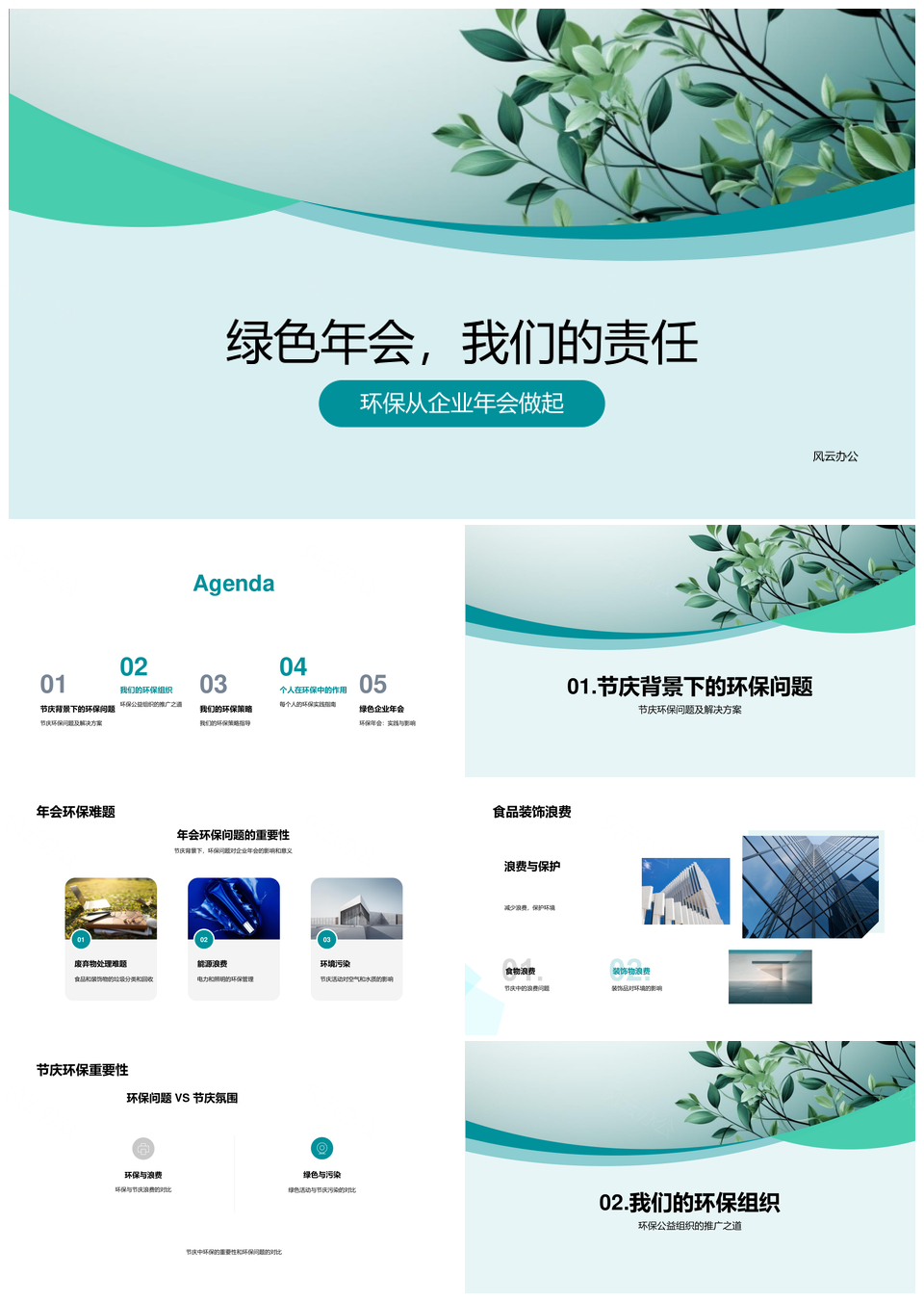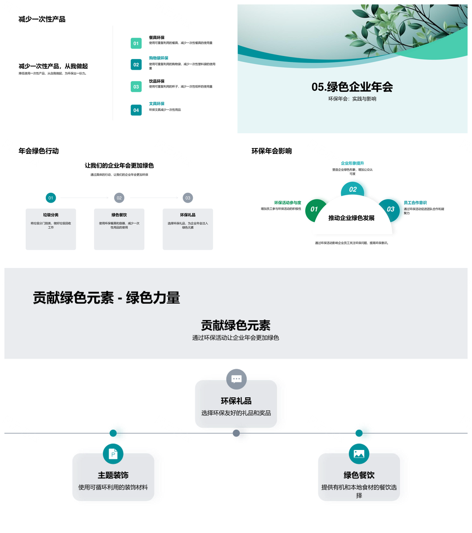 绿色年会企业环保公益践行垃圾分类减一次性PPT模板推荐