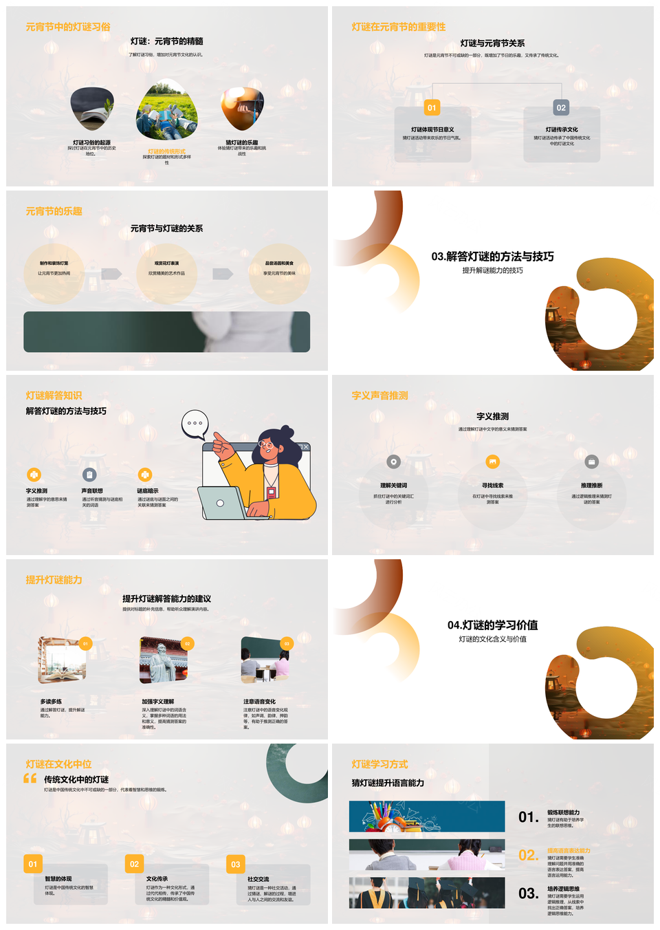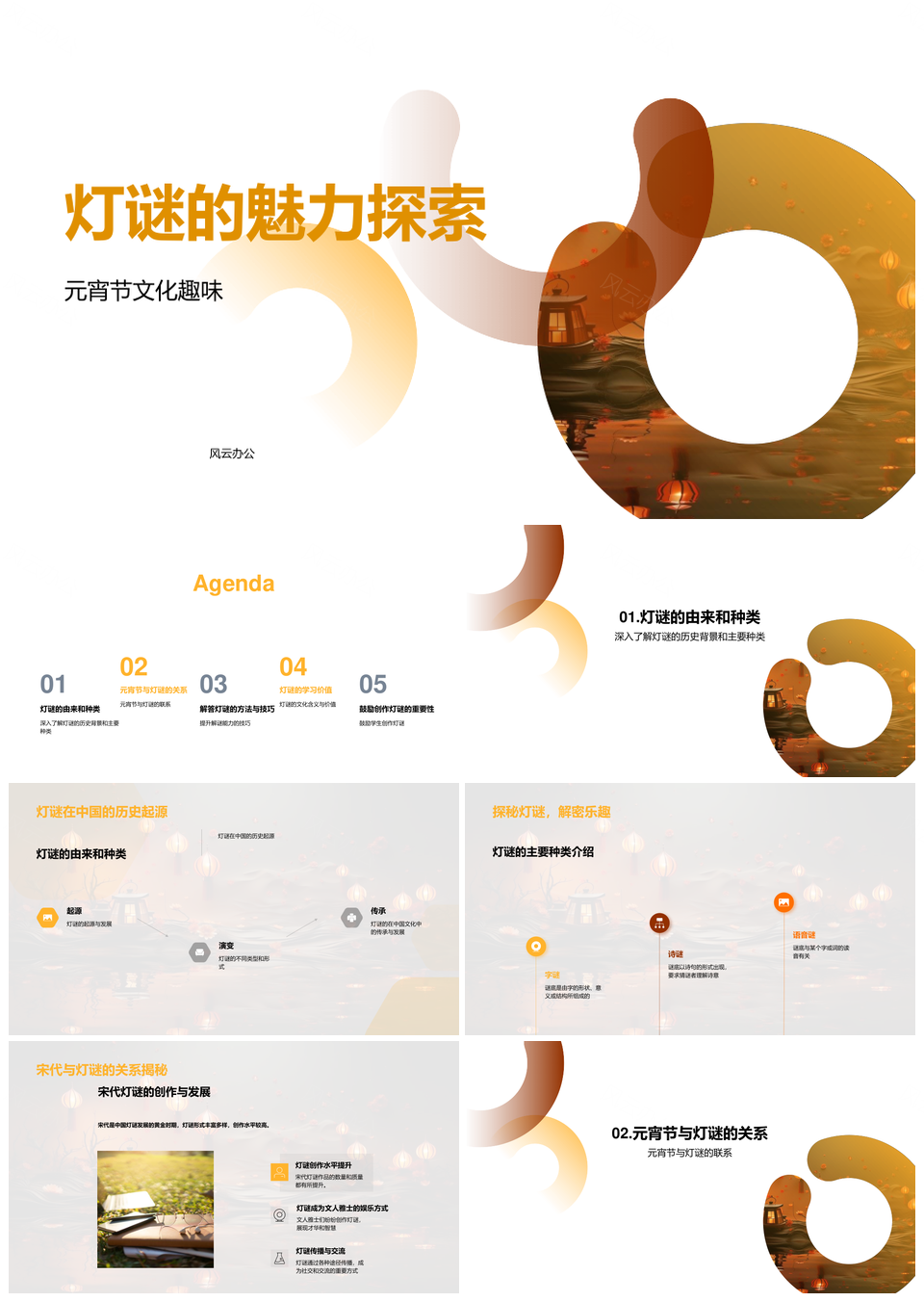 风云办公提供的元宵节灯谜宋代起源种类习俗探秘PPT模板,下载格式为pptx,一共23页,作品中文字及图均可以修改和编辑,图片更改请在作品中右键图片并更换,文字修改请直接点击文字进行修改。