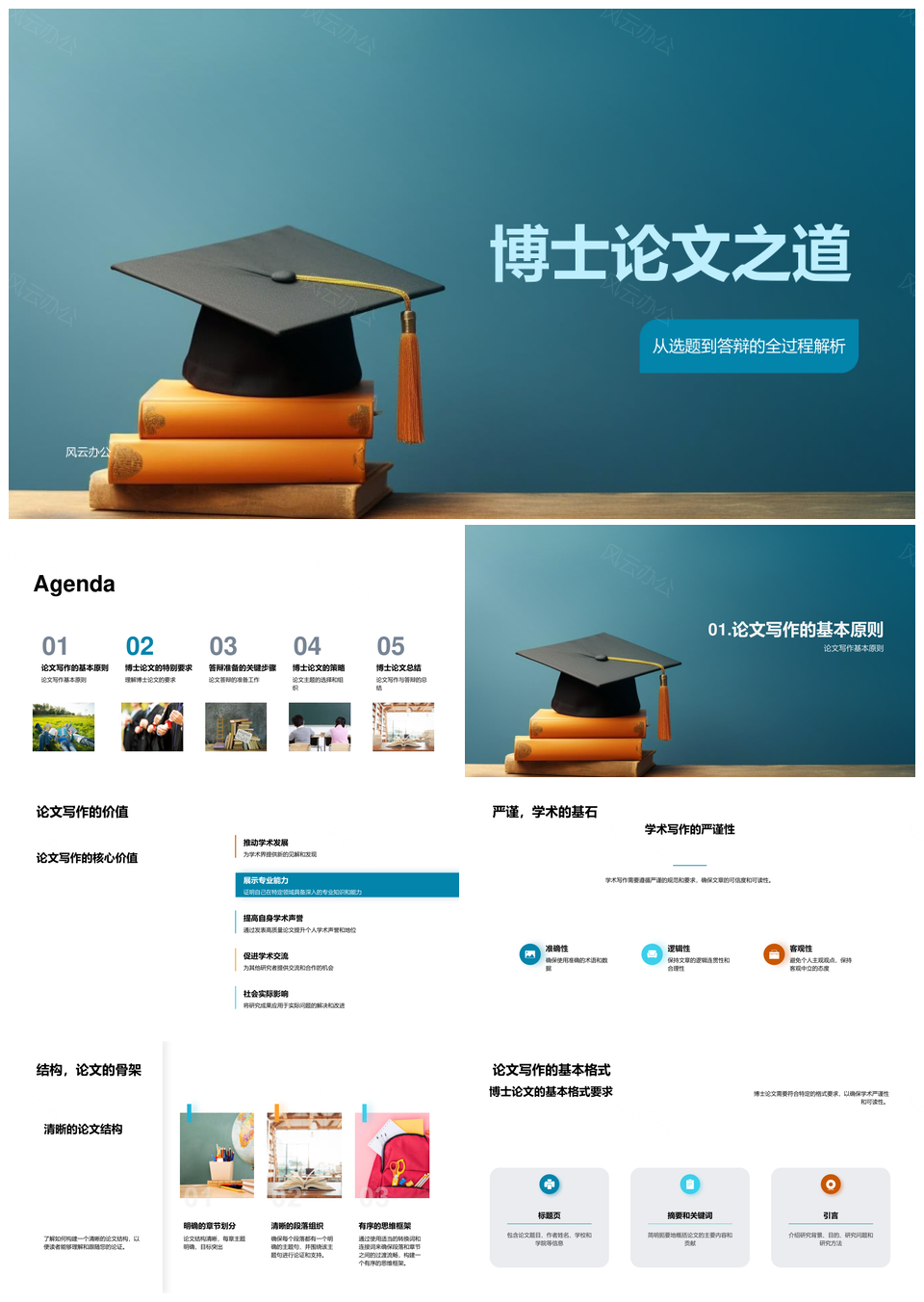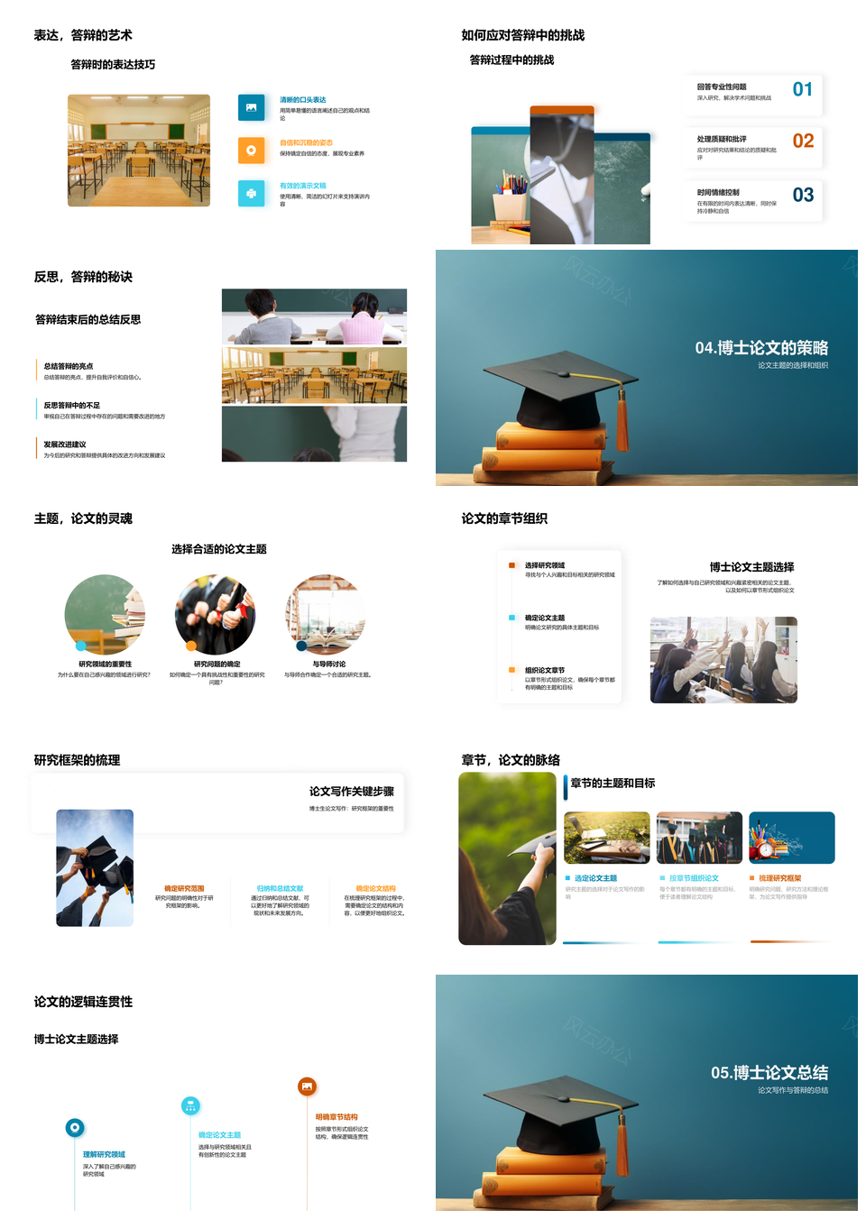 博士论文写作答辩学术贡献结构研究态度主题学位PPT模板推荐