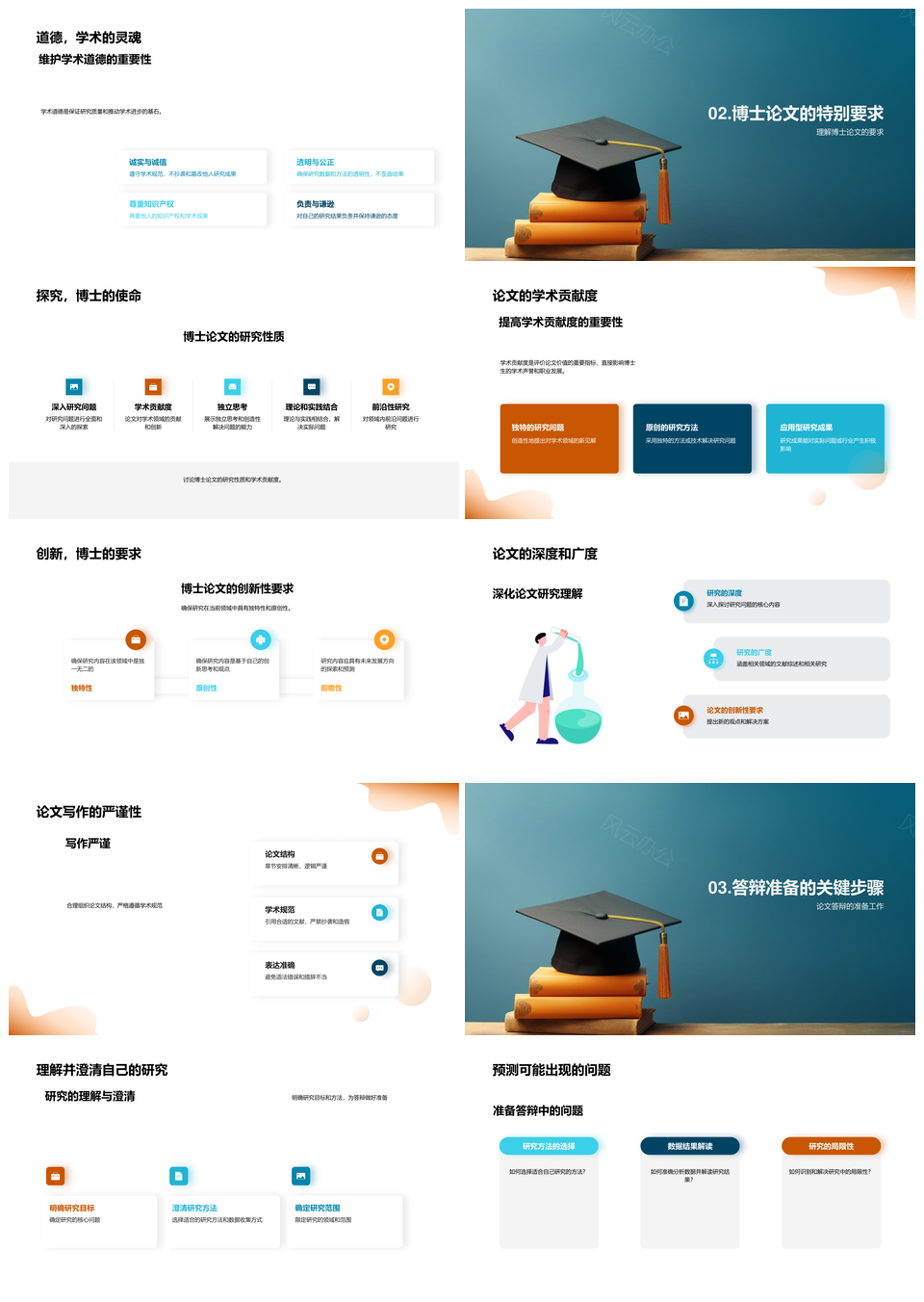 博士论文写作答辩学术贡献结构研究态度主题学位PPT模板