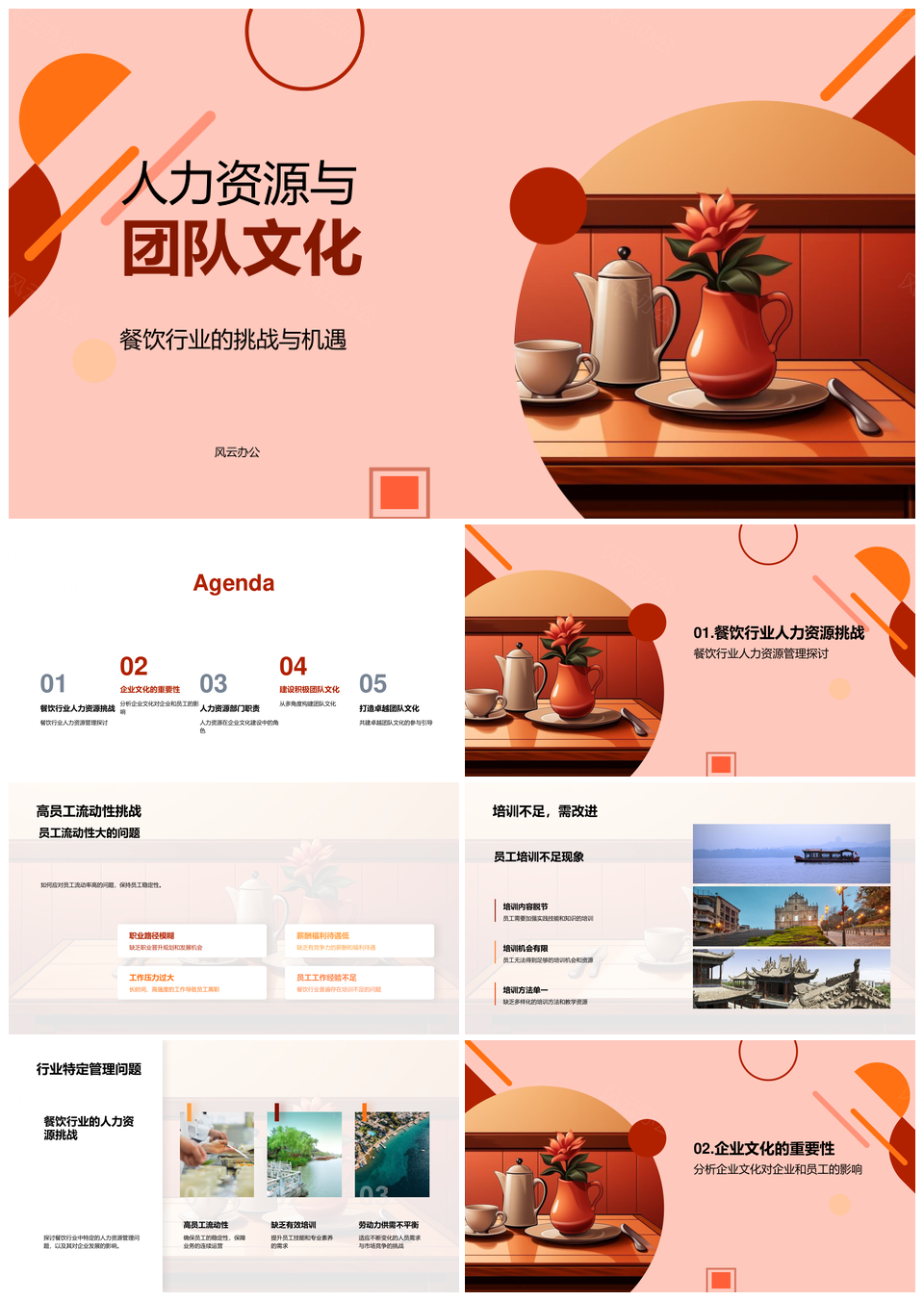 风云办公提供的餐饮业人力资源管理及团队文化建设PPT模板,下载格式为pptx,一共23页,作品中文字及图均可以修改和编辑,图片更改请在作品中右键图片并更换,文字修改请直接点击文字进行修改。