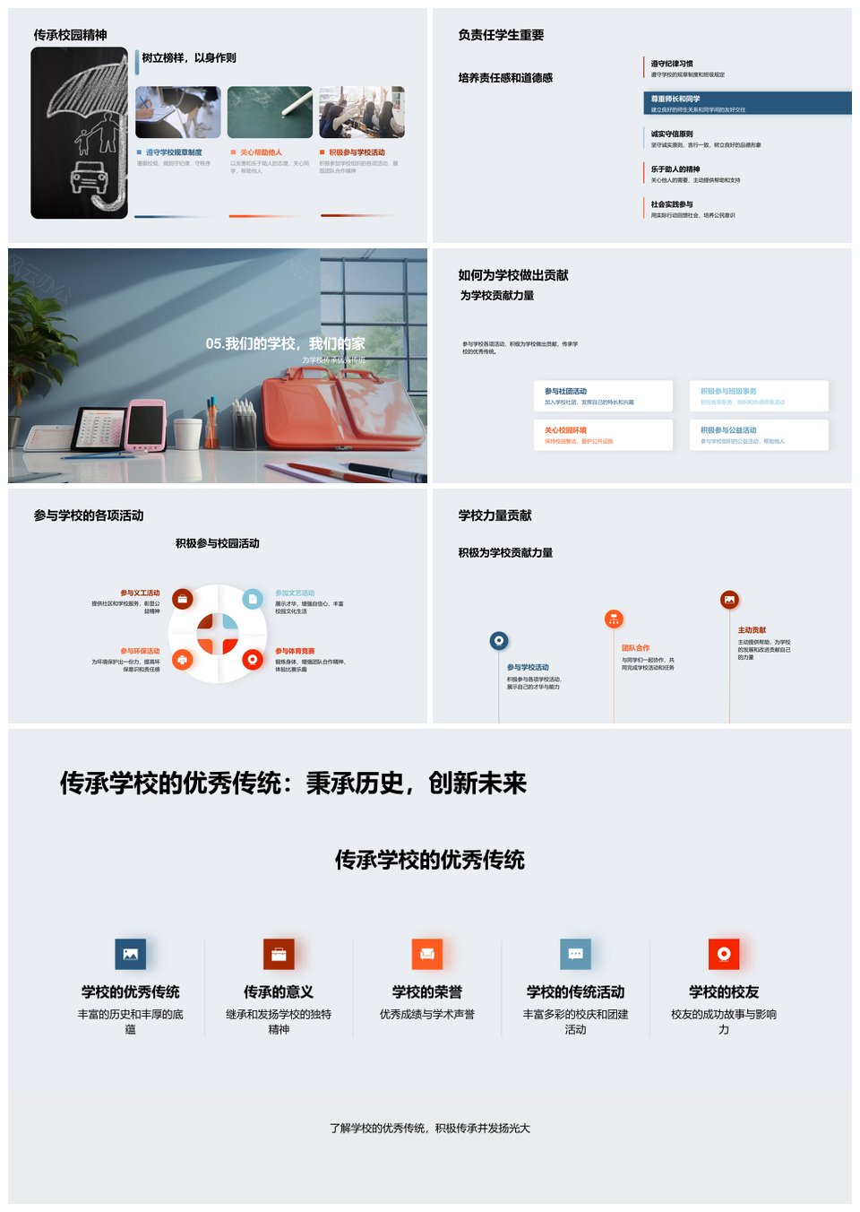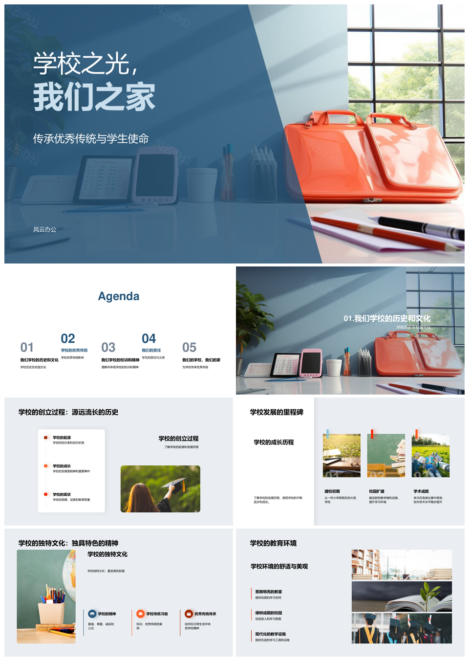 风云办公提供的学校之光我们之家精神传承发展历程PPT模板,下载格式为pptx,一共25页,作品中文字及图均可以修改和编辑,图片更改请在作品中右键图片并更换,文字修改请直接点击文字进行修改。