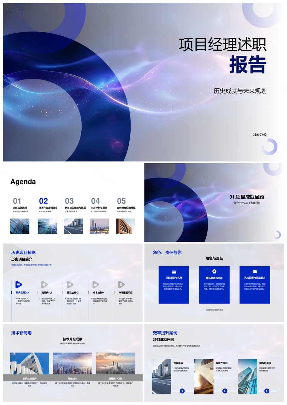 项目经理述职技术升级团队管理效率风控成就报告PPT模板推荐