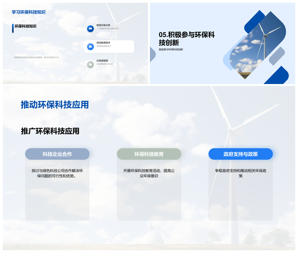 这是一张环保科技创新发展清洁能源智能分类应用PPT模板,包含环保科技、创新、发展、清洁能源、智能分类、应用等主题内容,也可用作环保科技创新发展、创新发展清洁能源、清洁能源智能分类、能源智能分类应用、环保科技创新、科技创新发展、发展清洁能源、清洁能源智能、智能分类应用、环保科技、科技创新、创新发展、清洁能源、智能分类、分类应用等PPT场景使用。 风云办公提供的环保科技创新发展清洁能源智能分类应用PPT模板,下载格式为pptx,一共21页,作品中文字及图均可以修改和编辑,图片更改请在作品中右键图片并更换,文字修改请直接点击文字进行修改。