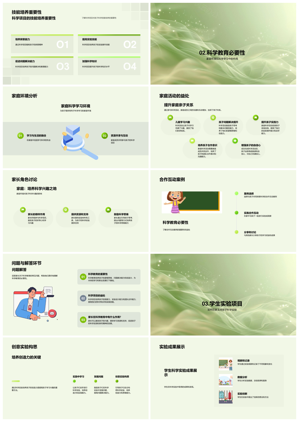 家庭科学教育探究实验家长参与创新能力PPT模板推荐